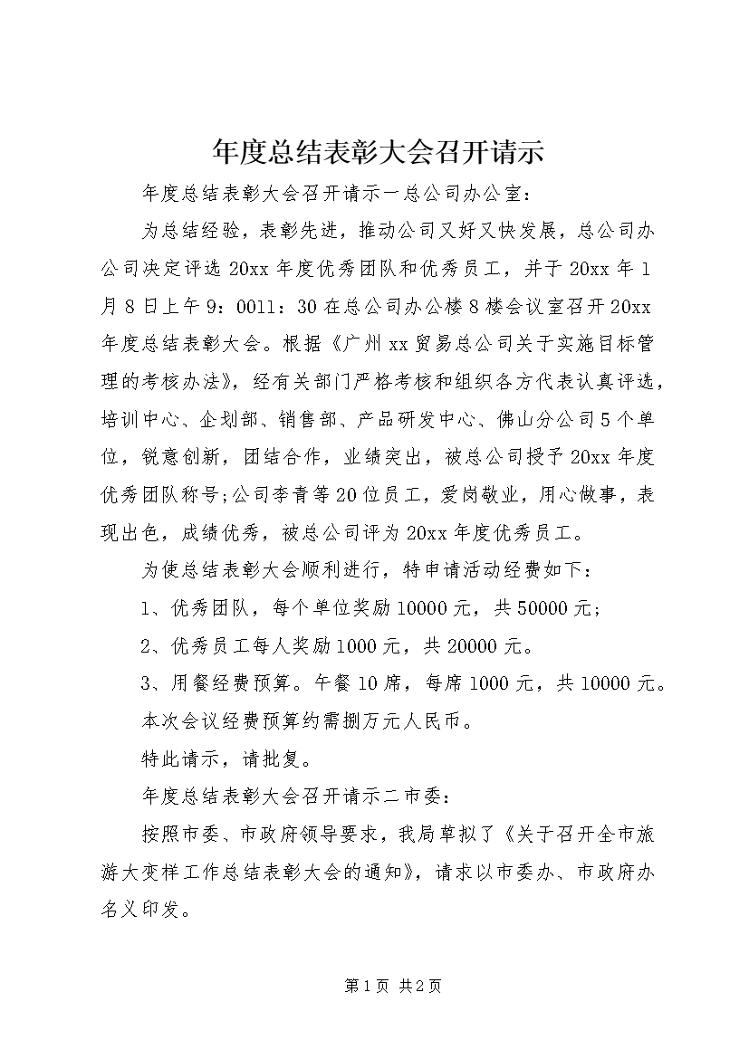 (word完整版)年度总结表彰大会召开请示-推荐文档.doc