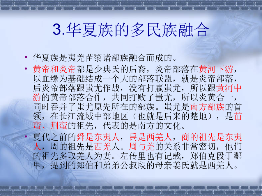一、汉族的形成黄河流域:龙山文化-仰韶文化黄河流域:大汶口文化-山东龙山文化长江流域:大溪文化-湖北龙山文化长江流域:河姆渡文化-良渚文化2.汉民族主源:黄河流域华夏族3.华夏族的多民族融合春秋战国时期中国的七个文化圈4.原始汉语从血缘到地域二、上古汉语的共同语和方言2.五方融合3.部族语言差异的文献记录4.先秦汉语的地理格局三、现代汉语方言的形成官话的形成及内部分区试着用方言说说下面的文字四、南方汉语的演变(三)三次大规模北民南迁的浪潮