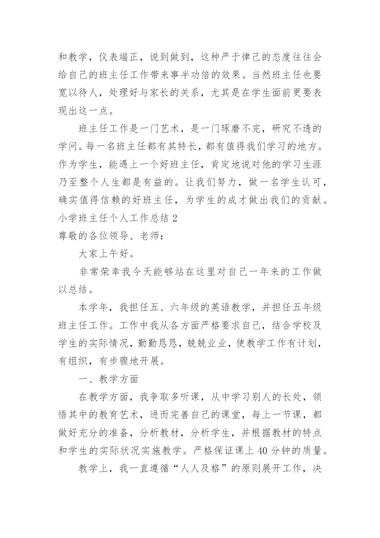 小学班主任个人工作总结小学班主任个人工作总结(精选15篇)总结就是把一个时间段取得的成绩、存在的问题及得到的经验和教训进行一次全面系统的总结的书面材料,通过它可以正确认识以往学习和工作中的优缺点,不妨让我们认真地完成总结吧。那么你知道总结如何写吗?下面是小编整理的小学班主任个人工作总结,希望能够帮助到大家。小学班主任个人工作总结1时光飞逝,不知不觉一学期就过去了,我继续担任的是二年级四班的班主任,在这一学期中,我和学生们都努力踏实地做好每一件事情,有辛勤的耕耘,有收获的喜悦,也有不足与遗憾。下面我就介绍这