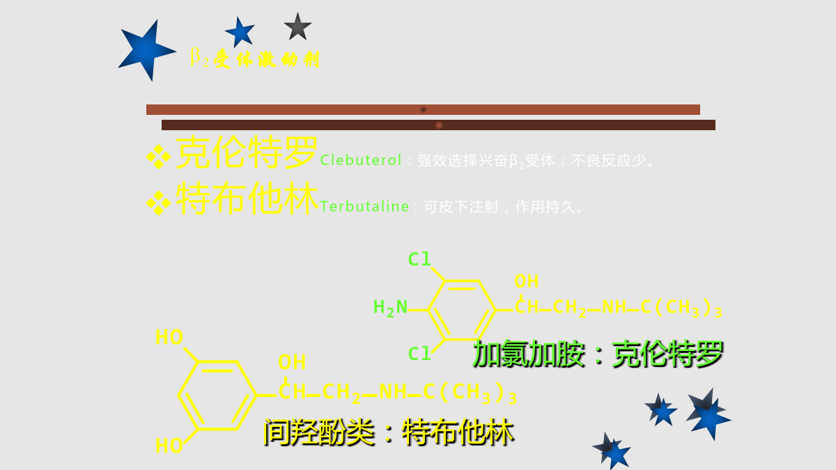 广州医学院药理教研室DepartmentofPharmacologyGuangzhouMedicalCollege分类平喘药哮喘发病机制一、肾上腺素受体激动药肾上腺素对α、β受体都有强大激动作用。仅皮下注射以缓解支哮急性发作。异丙肾上腺素β2受体激动剂β2受体激动剂β2受体激动剂二、茶碱四、肾上腺皮质激素倍氯米松:地塞米松衍化物局部抗炎作用强。起效慢。五、肥大细胞膜稳定药色甘酸钠SCG奈多罗米钠NS六、其它平喘药平喘药的临床应用镇咳药可待因右美沙芬喷托维林苯丙哌林苯佐那酯祛痰
