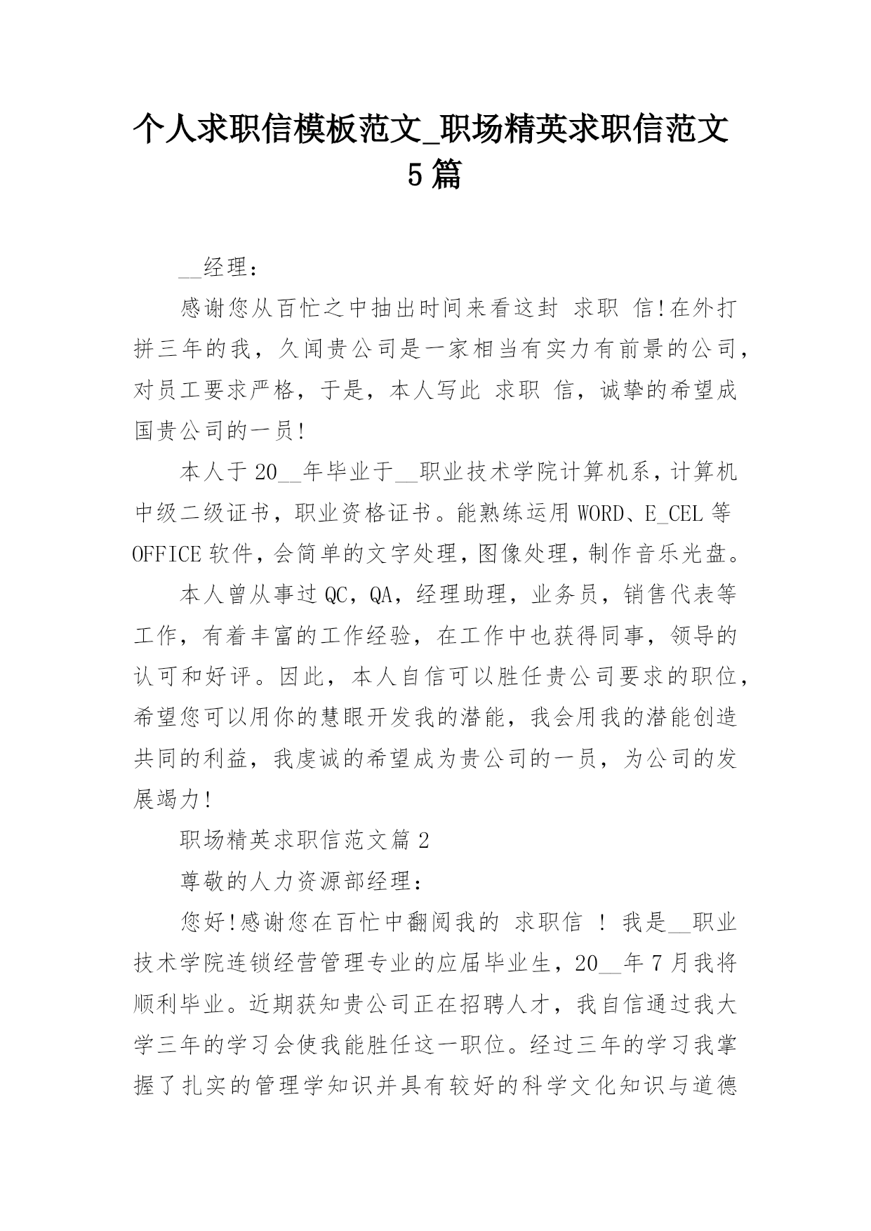 个人求职信模板范文_职场精英求职信范文5篇精编.docx