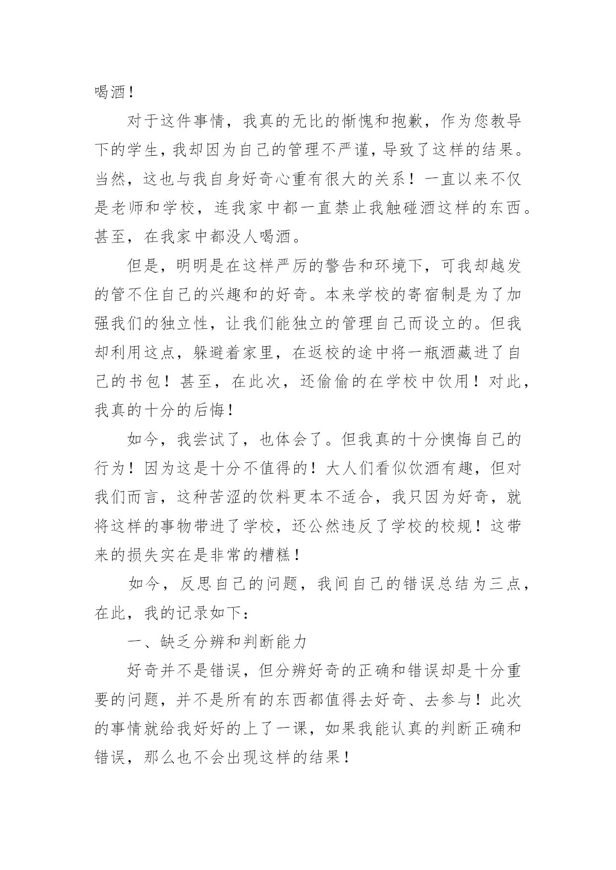 酒后检讨书酒后自我反省检讨书酒后检讨书(酒后自我反省检讨书)1我今年28岁,我是一名司机,已在职工作6年了。今天我怀着无比内疚的心情,向关爱我的人做检讨:事情发生后,我的心情非常沉重,我明白,由于我一时大意、一时糊涂,造成了交通事故。因此我深深地懊悔不已,在此深刻检讨:1、本人的世界观以及对事物的认识能力均没有随着自己阅历的增加而发展和提高。总是认为,象这次所发生的事情,不会发生什么大的事情,不会造成太大的麻烦,其实不然,事情的发生是严重的、沉重的,对我来说是非常深刻的。就本人的认识能力来说,也存在着一定