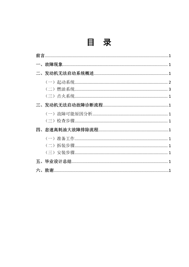 目录前言.................................................................................................................1一、故障现象................................................................................................1二、发动机无法启动系统概述.....................