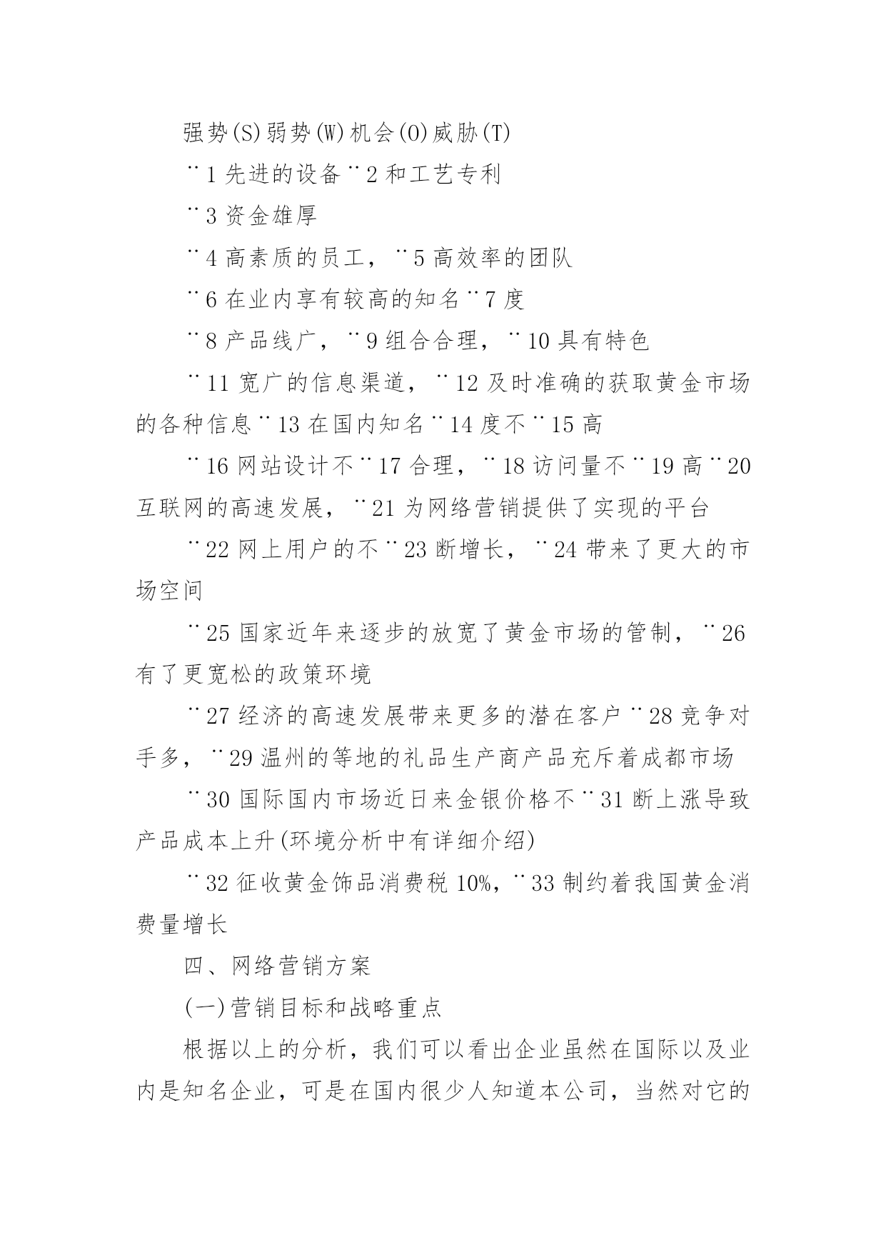网络推广策划书网络推广策划书【热】时光在流逝,从不来停歇,一段时间的工作已经告一段落,面对新的工作,制定好新的目标,这时候十分有必须要写一份策划书了。你知道写策划书需要注意哪些问题吗?下面是小编为大家整理的网络推广策划书,欢迎大家借鉴与参考,希望对大家有所帮助。网络推广策划书1一、定位分析1、网站剖析:对网站的自身进行解剖分析,目的是寻找到网站的基础问题所在。2、电子商务定位:对企业网站进行电子商务定位,明确网站的位置。3、电子商务模式分析:分析网站的电子商务模式,研究与网站相匹配的电子商务模式。4、行业