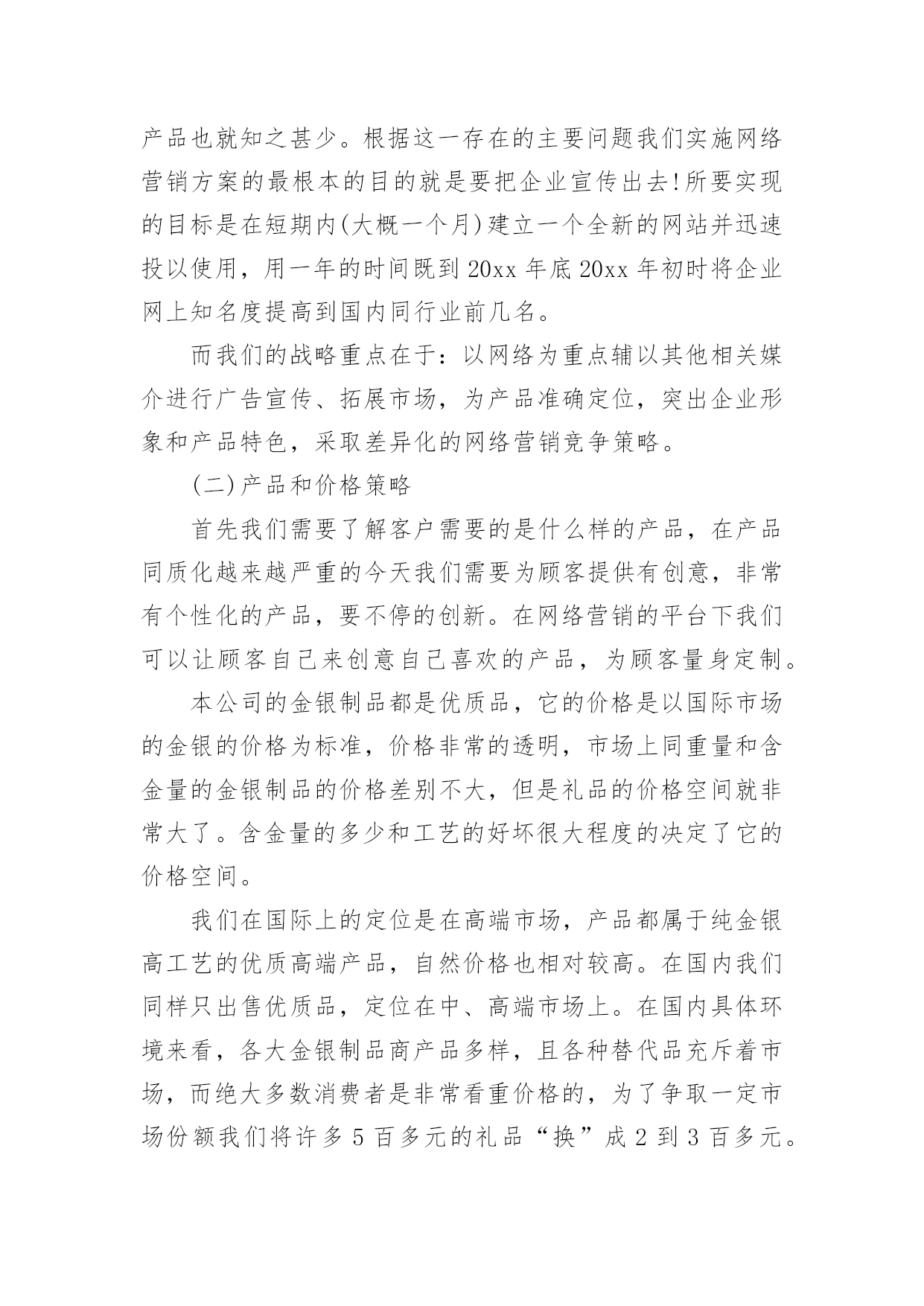 网络广告策划书网络广告策划书不经意间,一段时间的工作已经结束了,我们又将开启新一轮的工作,又有新的工作目标,何不赶紧趁现在写写策划书。那么策划书有什么格式呢?以下是小编精心整理的网络广告策划书,仅供参考,欢迎大家阅读。网络广告策划书1一、公司资源状况从外部的网络中反映的状况分析,目前的公司网络推广已有资源基本情况如下:网站本身:google收录512页,主关键词“LED显示屏”排名82位,百度收录页面318页,但排名未进入前100位。网站本身的结构存在问题,内容存在问题,比较难进行排名的优化,需要逐渐改善
