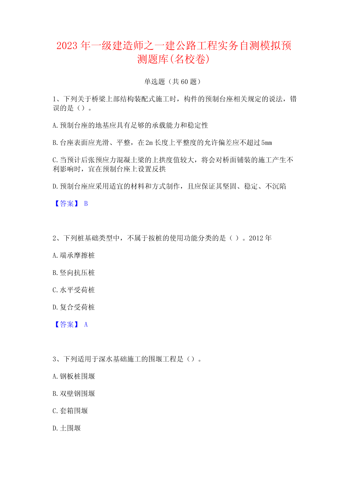 一级建造师之一建公路工程实务自测模拟预测题库(名校卷).pdf