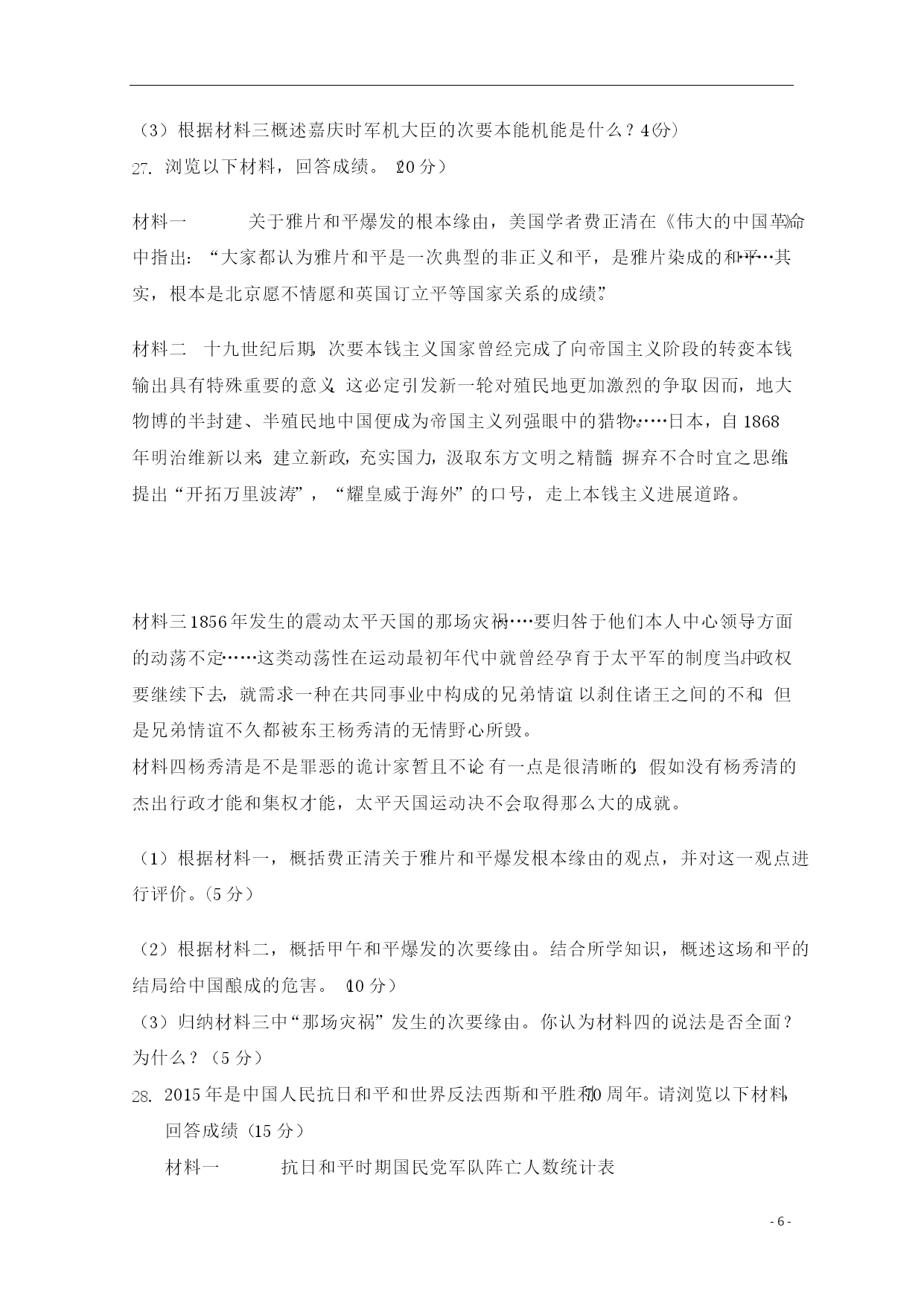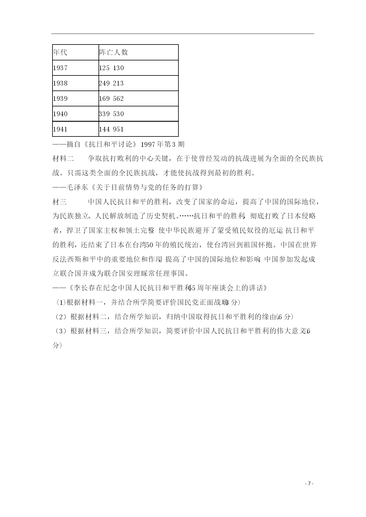 PAGE-7-2018-2019学年第一学期虔州艺术学校期中试卷高一历史考试时间:100分钟留意:答案写在试卷上均有效,不予记分。一、单选题(本大题共25小题,共50.0分)通过推衍传继,某制度维系了一个庞大的宗支网,状如“树之干与枝”的关系。该制度是()A.世官制B.分封制C.宗法制D.察举制《三国志》称秦始皇“罢侯置守,设官分职,不与古同”。这是指秦朝实行了()A.郡县制B.分封制C.井田制D.宗法制《三国志》称秦始皇“罢侯置守,设官分职,不与古同”。这是指秦朝实行了()A郡县制B.分封制C.井