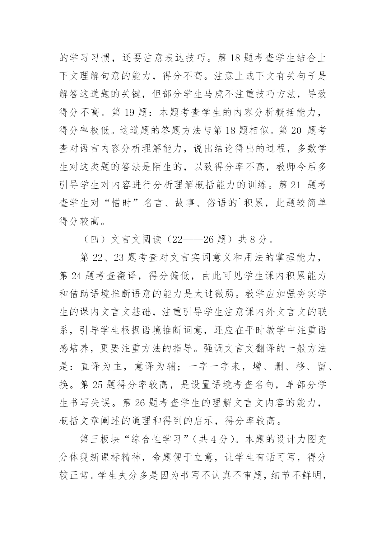 语文试卷分析语文试卷分析15篇现如今,我们很多时候都不得不用到试卷,经过半个学期的学习,究竟学到了什么?需要试卷来帮我们检验。你知道什么样的试卷才是好试卷吗?以下是小编为大家收集的语文试卷分析,希望能够帮助到大家。语文试卷分析1一、试卷概况本次期中考试语文试卷从知识与能力、过程与方法、情感态度与价值观等三个方面,综合考查学生的语文素养,侧重考查学生语言文化的积累,侧重考查学生适应实际需要的阅读能力、写作能力,以及综合运用所学语文去解决实际问题的能力。试卷100分,120分钟完成。二、命题简析、失分原因及对