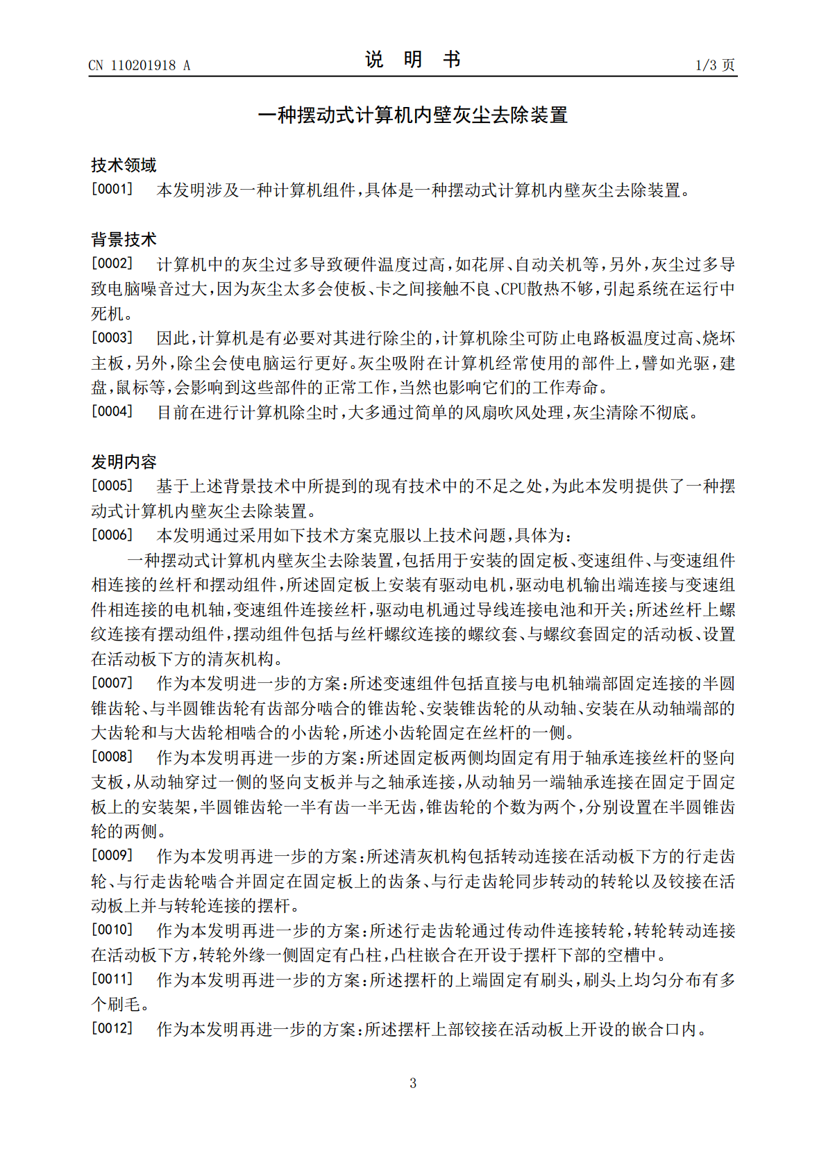 一种摆动式计算机内壁灰尘去除装置.pdf