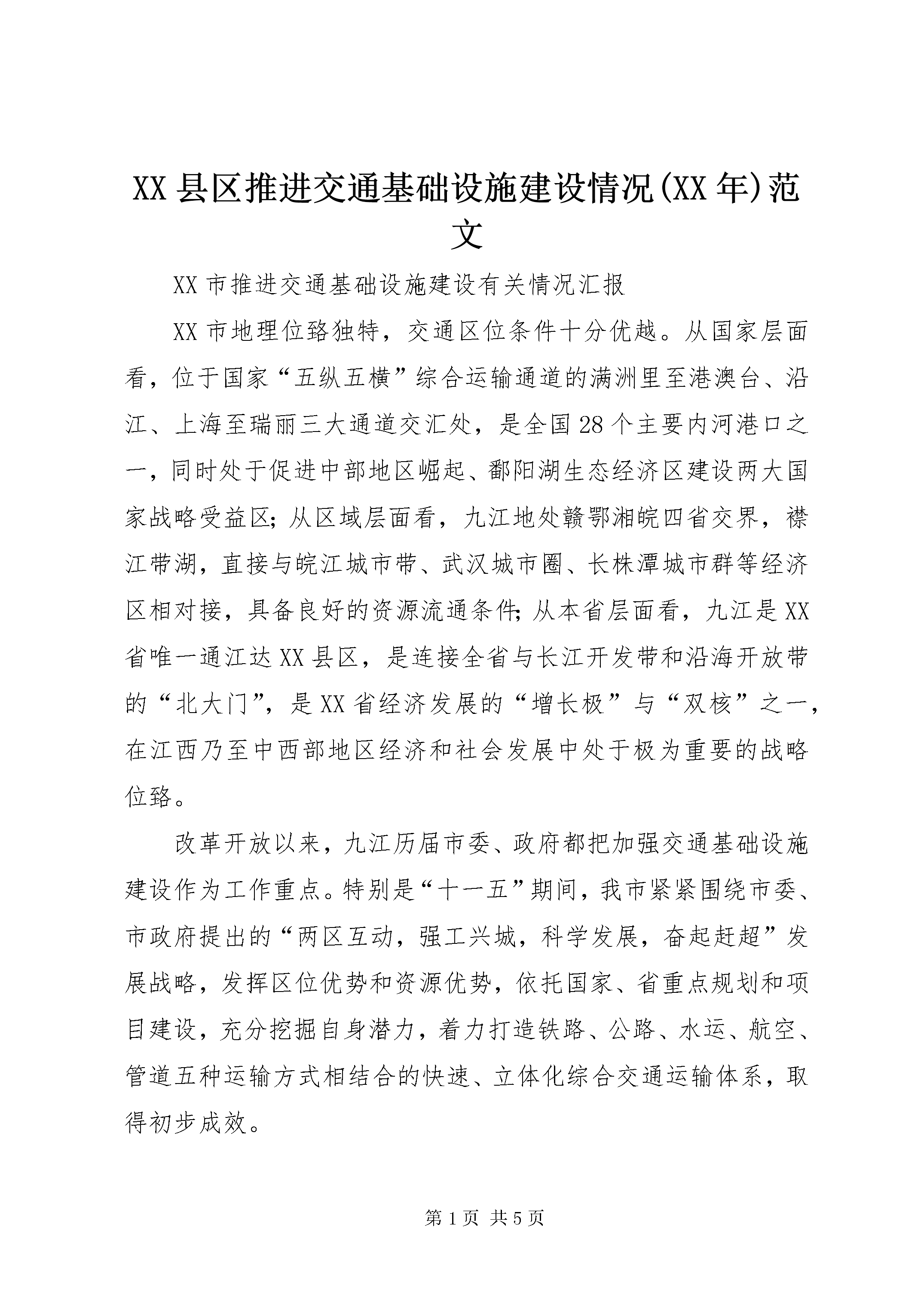 XX县区推进交通基础设施建设情况(某年)范文_.docx