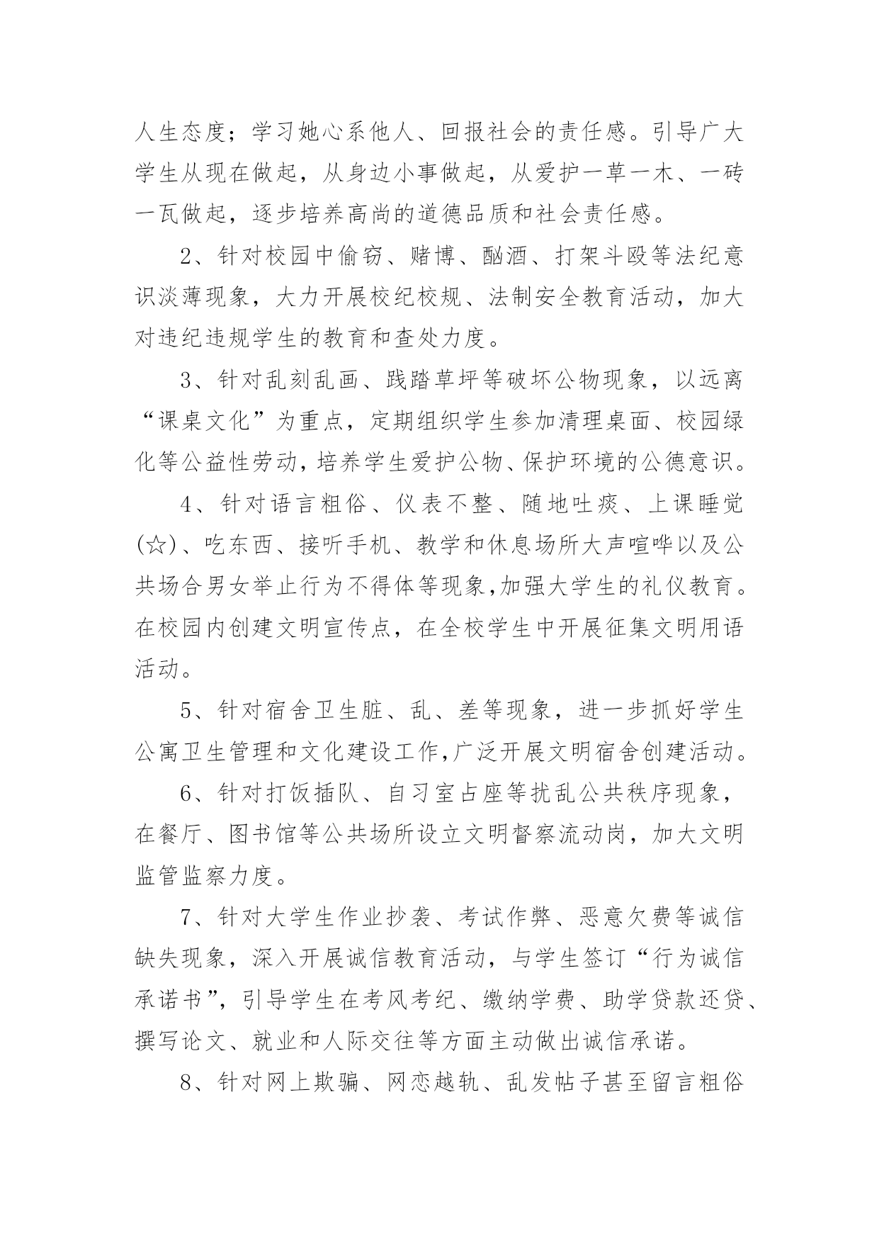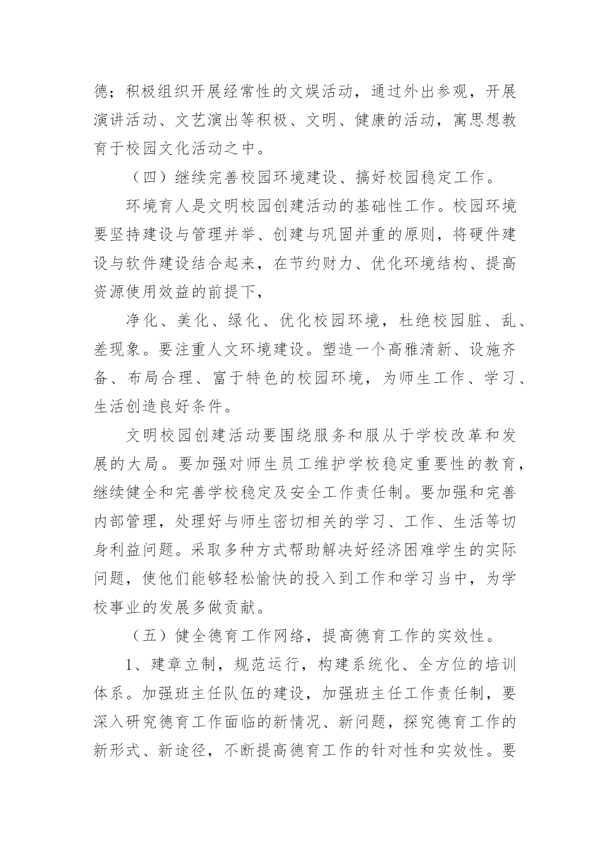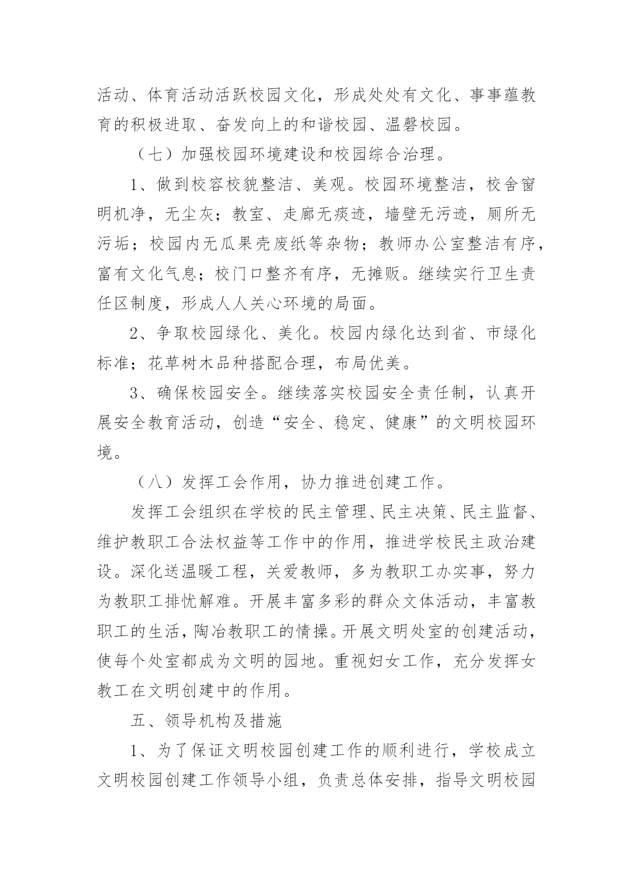 文明校园创建活动实施方案新版多篇[导语]文明校园创建活动实施方案新版多篇为的会员投稿推荐,但愿对你的学习工作带来帮助。文明校园建设方案篇一文明校园创建活动是学校精神文明建设工作的系统性、综合性工程,是教育战线精神文明建设的重要载体。我校一直把校园精神文明建设暨文明校园创建活动作为首要工作来抓,为了把校园精神文明建设进一步引向深入,使我校精神文明建设更加科学化、规范化,推动学校的各项改革和发展,特在全校范围内集中开展文明校园创建活动。一、指导思想高举邓小平理论伟大旗帜,以“三个代表”重要思想和科学发展观为指