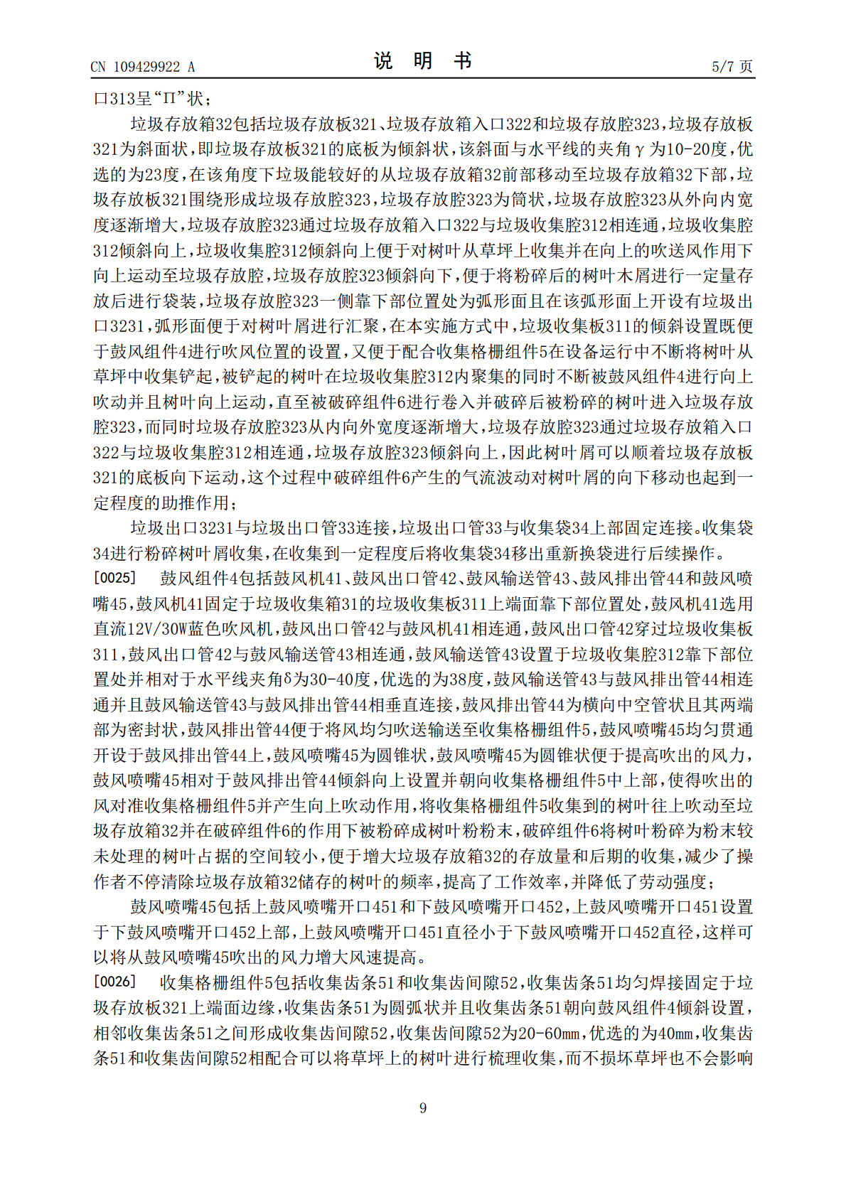 本发明涉及垃圾处理领域,具体涉及一种清理效果好的垃圾清理装置及其使用方法,包括前滚轮、后滚轮、垃圾清理箱、鼓风组件、收集格栅组和破碎组件,所述垃圾清理箱前部设有前滚轮,鼓风组件与垃圾清理箱相连并与收集格栅组件相对应,垃圾清理箱后底部固定有收集格栅组件并且在靠近收集格栅组件一侧处设有后滚轮,后滚轮固定设置于垃圾存放箱底壁,垃圾清理箱内靠近收集格栅组件处设有破碎组件,垃圾清理箱一端固定有推动组件;另外还公开了本发明的使用方法,本发明结构简单,可以很好的将落入草坪中的落叶进行清理,清理落叶干净,不仅能清理草坪表