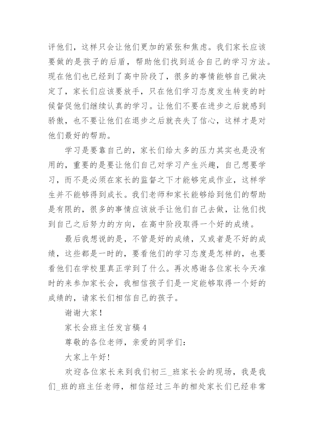 家长会班主任发言稿精选.docx
