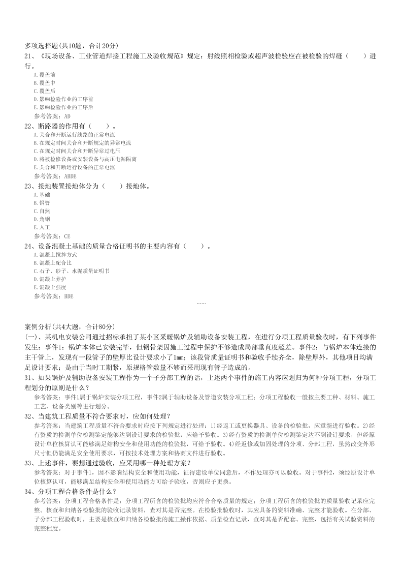 2022年湖北二级建造师《二级建造师水利水电工程管理与实务2022》考试考前冲刺卷(本卷共分为2大题50小题,作答时间为180分钟,总分100分,60分及格。)单位:姓名:考号:题号单选题多项选择判断题综合题总分分值得分一、单项选择题(共25题,每题2分。每题的备选项中,只有一个最符合题意)1.用冷拉法调直钢筋,I级钢筋的矫直冷拉率不得。A:大于1%B:小于1%C:大于2%D:小于2%E:工程质量保证书2.焊接和绑扎接头距离钢筋弯头起点不得小于倍直径。A:8B:10C:12D:14E:工程质量保证书3.水