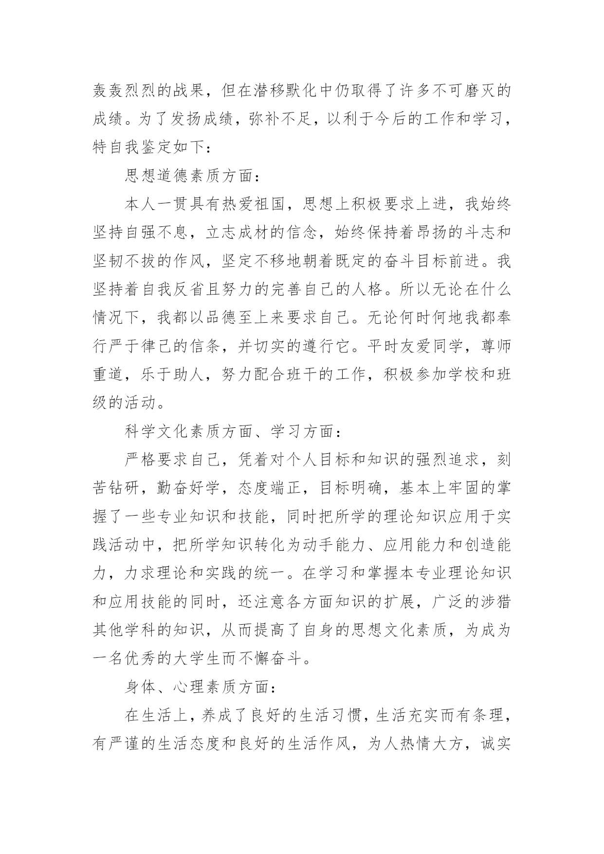 高二素质自我评价高二素质自我评价15篇在平平淡淡的学习、工作、生活中,我们都不可避免地要写自我评价,自我评价往往折射出个人对人生自我价值和社会价值的认识和态度。相信许多人会觉得自我评价很难写吧,以下是小编帮大家整理的高二素质自我评价,供大家参考借鉴,希望可以帮助到有需要的朋友。高二素质自我评价1本人在校热爱祖国,尊敬师长,团结同学,乐于助人,是老师的好帮手,同学的好朋友。我学习勤奋,积极向上,喜欢和同学讨论并解决问题,经常参加班级学校组织的各种课内外活动。在校期间,我能自觉遵守中学生守则,遵守学校纪律认真
