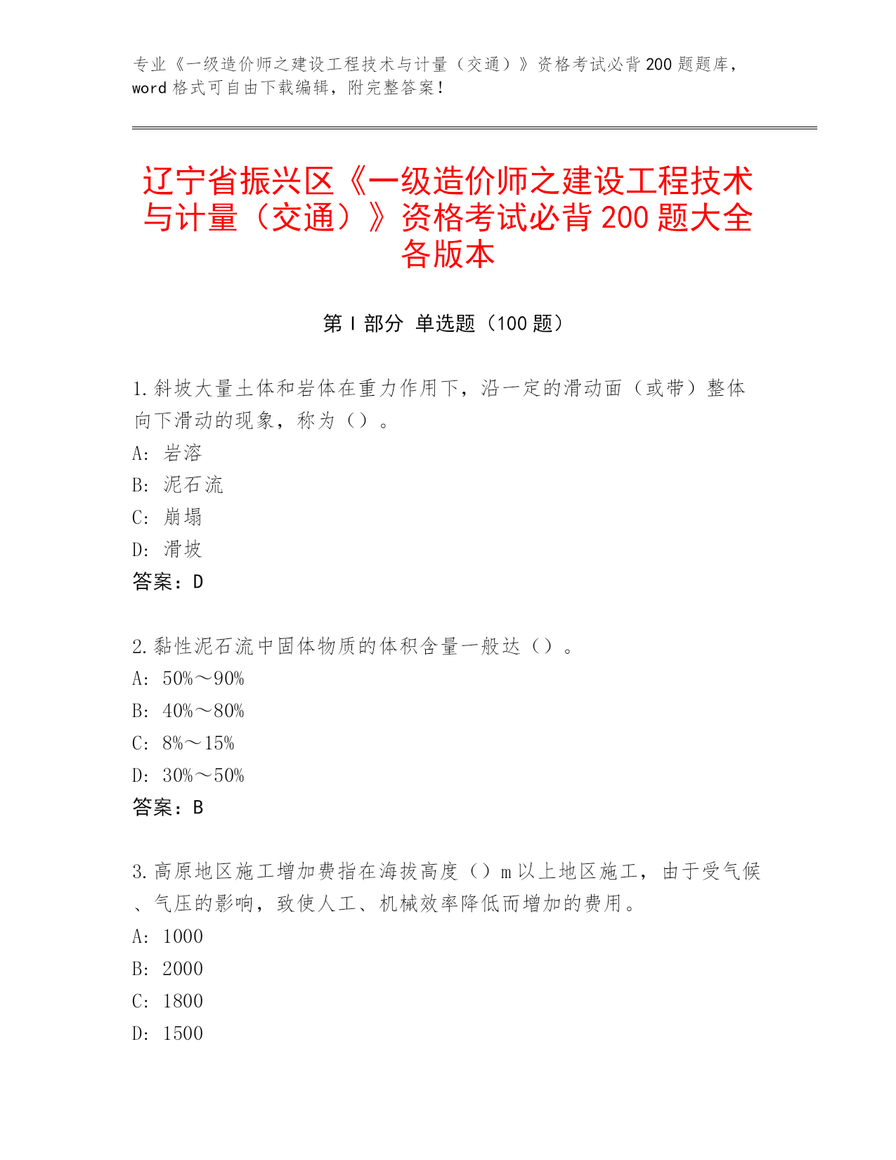 辽宁省振兴区《一级造价师之建设工程技术与计量(交通)》资格考试必背200题大全各版本.docx