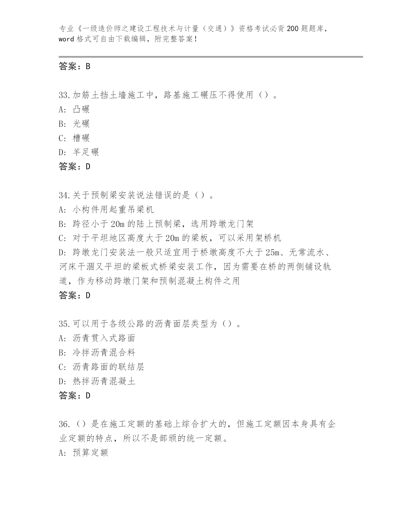 历年甘肃省《一级造价师之建设工程技术与计量(交通)》资格考试必背200题大全各版本.docx