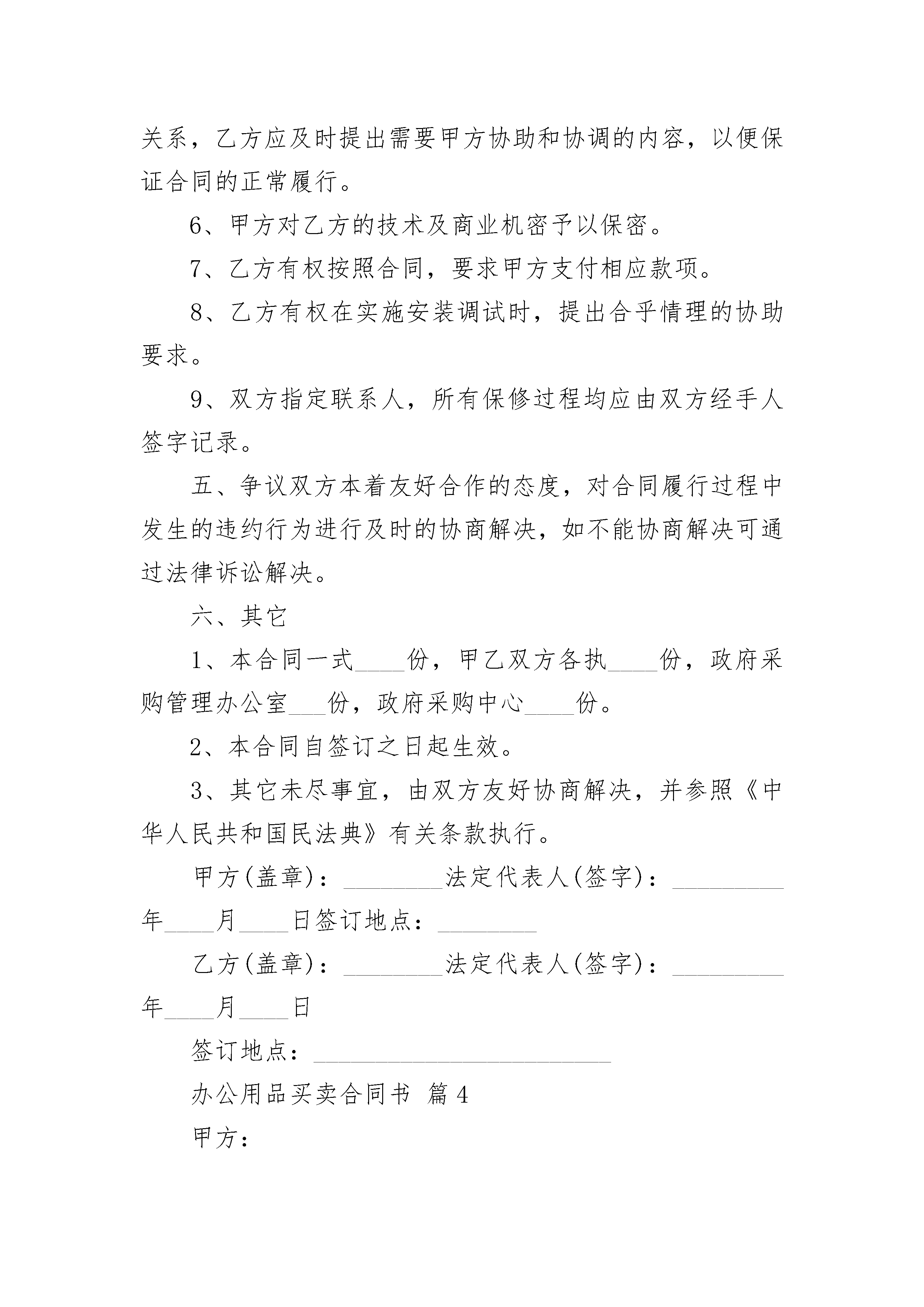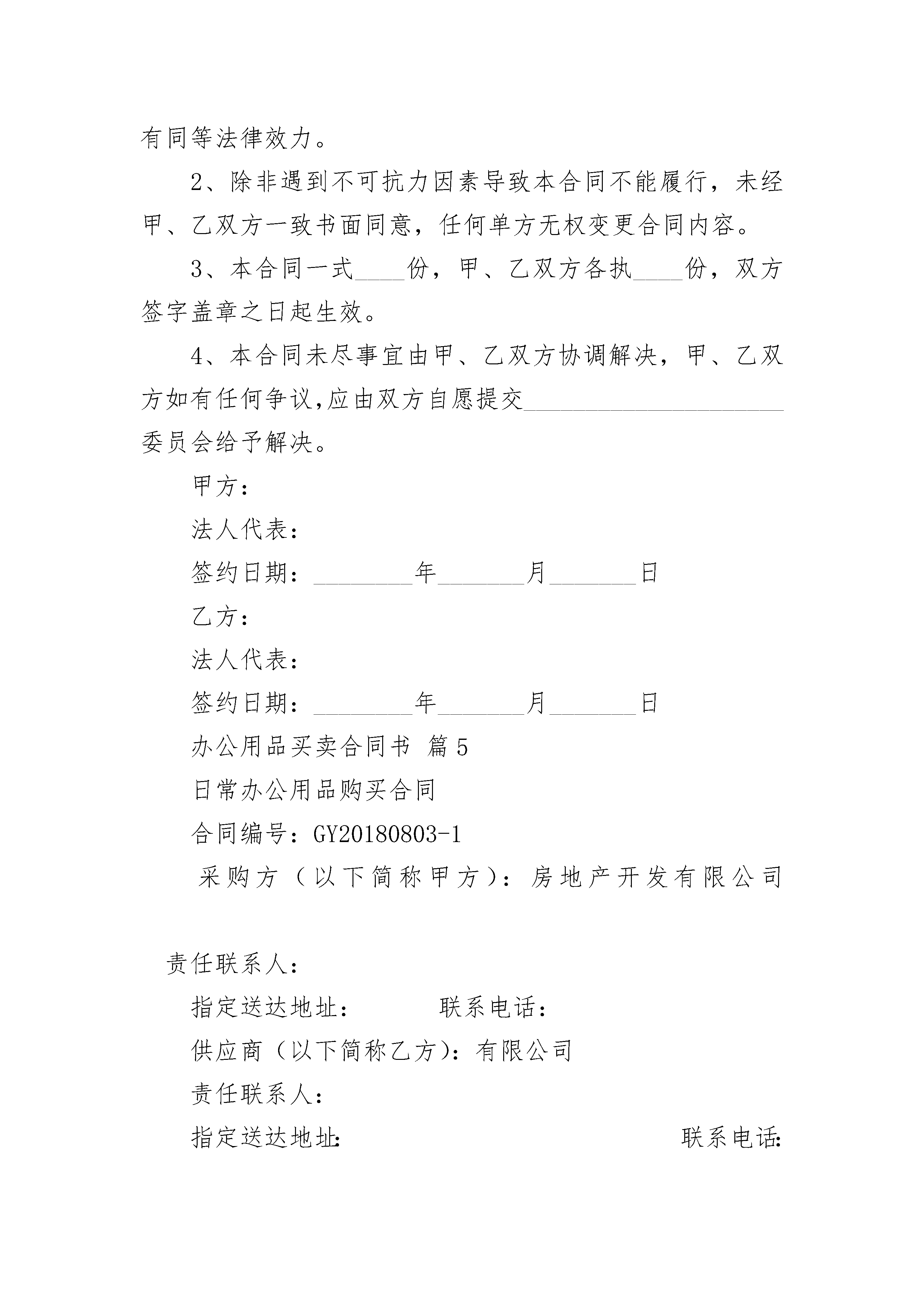 办公用品买卖合同书样本办公用品买卖合同书样本(精选5篇)随着法律法规不断完善,人们越发重视合同,合同在生活中的使用越来越广泛,正常情况下,签订合同必须经过规定的方式。那么大家知道正规的合同书怎么写吗?以下是小编为大家收集的办公用品买卖合同书样本(精选5篇),希望能够帮助到大家。办公用品买卖合同书样本1甲方:乙方:今甲方向乙方采购一批电脑,为友好合作,特定如下合同,平板电脑购销合同。一、采购产品名称、价格。1、甲方向乙方定购的电脑配置。共计总金额为:xx元。二、产品的验收、售后服务及质保1、乙方按照双方约定