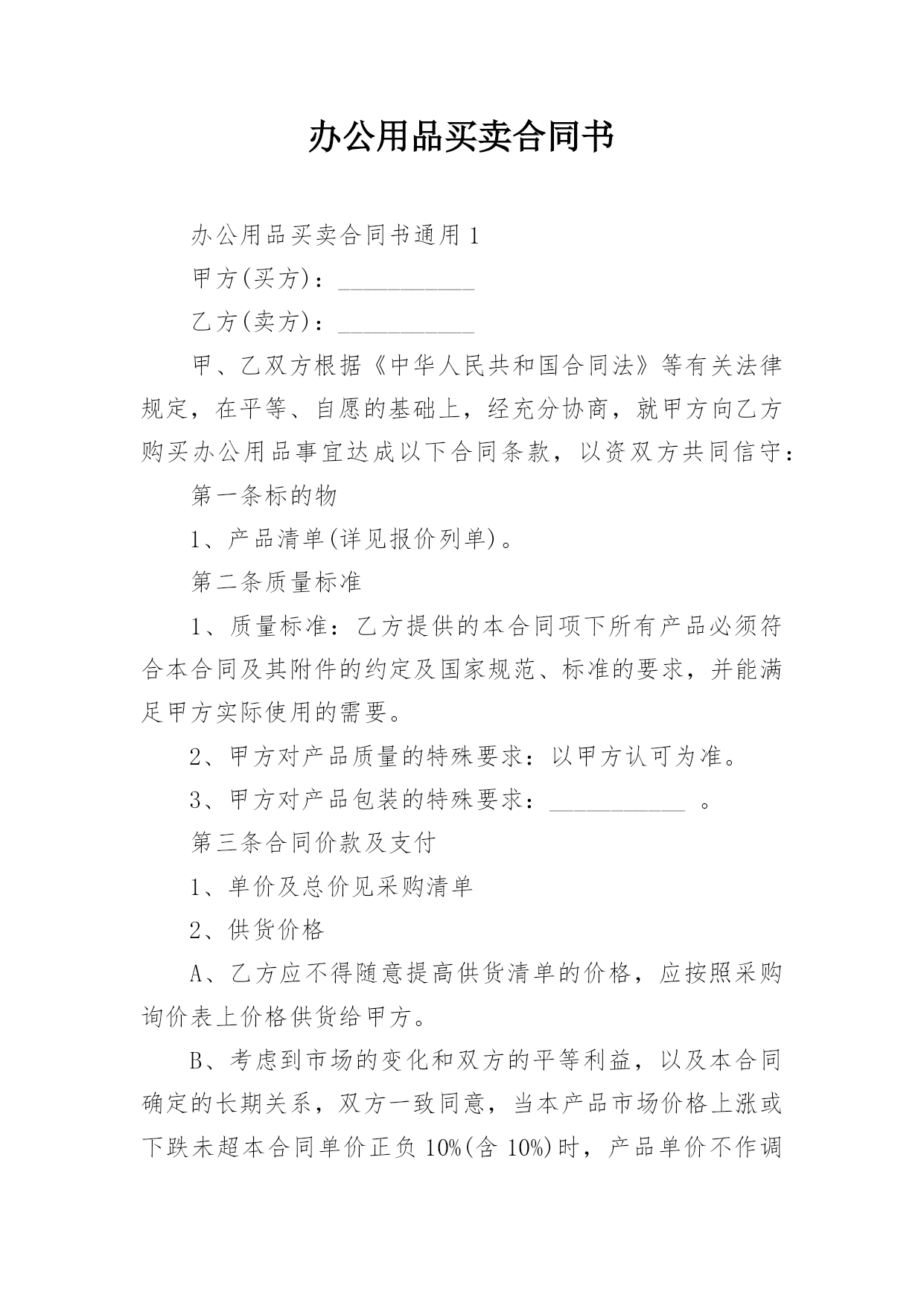办公用品买卖合同书办公用品买卖合同书通用1甲方(买方):___________乙方(卖方):___________甲、乙双方根据《中华人民共和国合同法》等有关法律规定,在平等、自愿的基础上,经充分协商,就甲方向乙方购买办公用品事宜达成以下合同条款,以资双方共同信守:第一条标的物1、产品清单(详见报价列单)。第二条质量标准1、质量标准:乙方提供的本合同项下所有产品必须符合本合同及其附件的约定及国家规范、标准的要求,并能满足甲方实际使用的需要。2、甲方对产品质量的特殊要求:以甲方认可为准。3、甲方对产品包装的