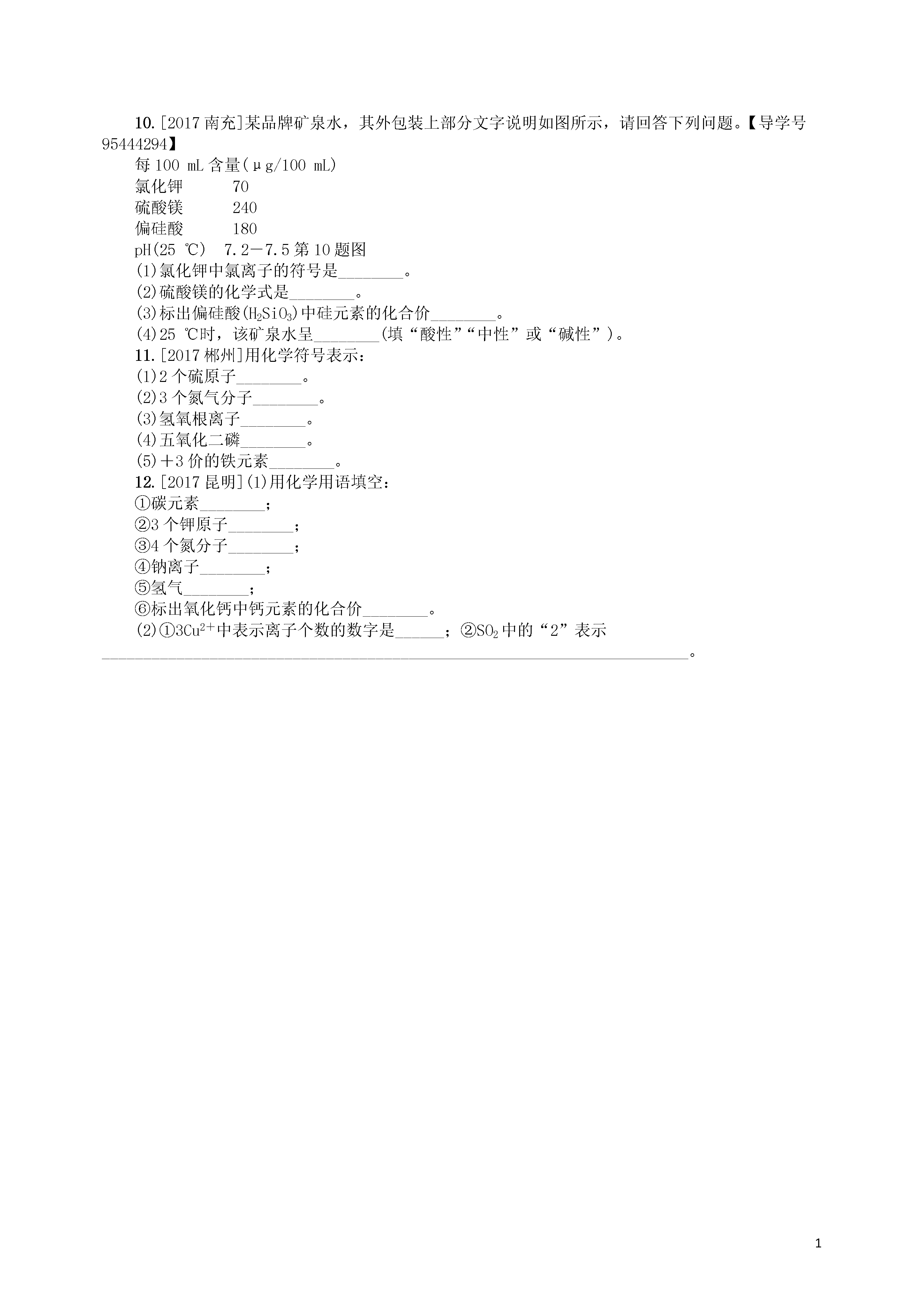2018届中考化学复习第11讲物质组成的表示练习.doc
