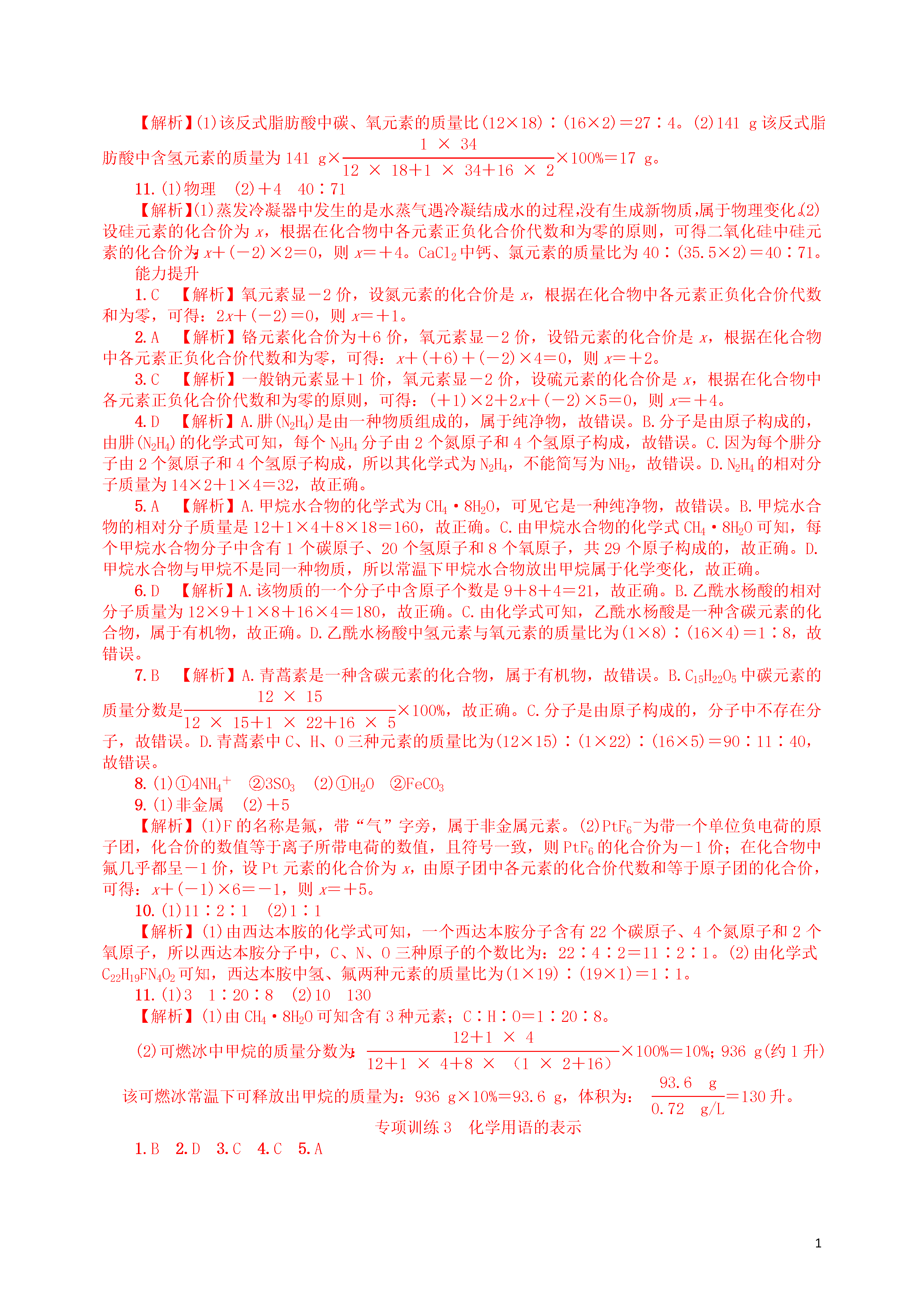 9第11讲物质组成的表示甘肃、兰州三年中考命题点1化合价的计算1.[2017兰州,12]硫代硫酸钠,又名大苏打,化学式为Na2S2O3,其中S元素的化合价是()A.+2B.+4C.+6D.-22.[2016兰州,13]LiFePO4新型锂离子电池以其独特的优势成为绿色能源的新宠,已知锂的化合价为+1价,P的化合价为+5,则LiFePO4中Fe的化合价是()A.+2B.0C.+3D.+63.[2015甘肃,3]LiCoO2(钴酸锂)主要用于制造手机、笔记本电脑及其他便携式电子设备锂离子电池的正极材料。已知L