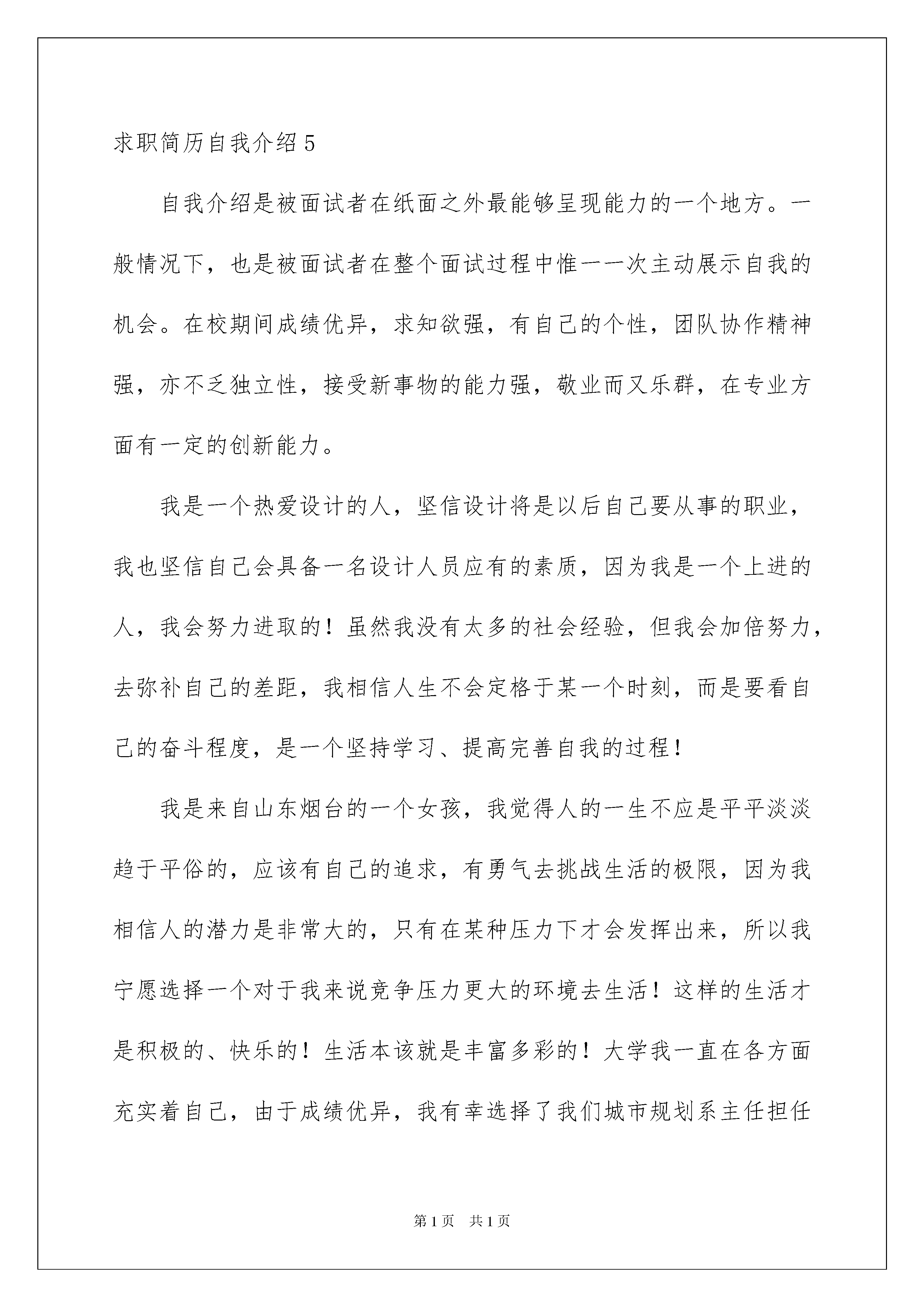 2022求职简历自我介绍求职简历自我介绍光阴如水我们将带着新的期许开启新一轮的求职是时候好好地琢磨一下写简历的事情了哦。相信很多人都十分头疼怎么写一份精彩的简历吧下面是我为大家收集的求职简历自我介绍希望对大家有所帮助。求职简历