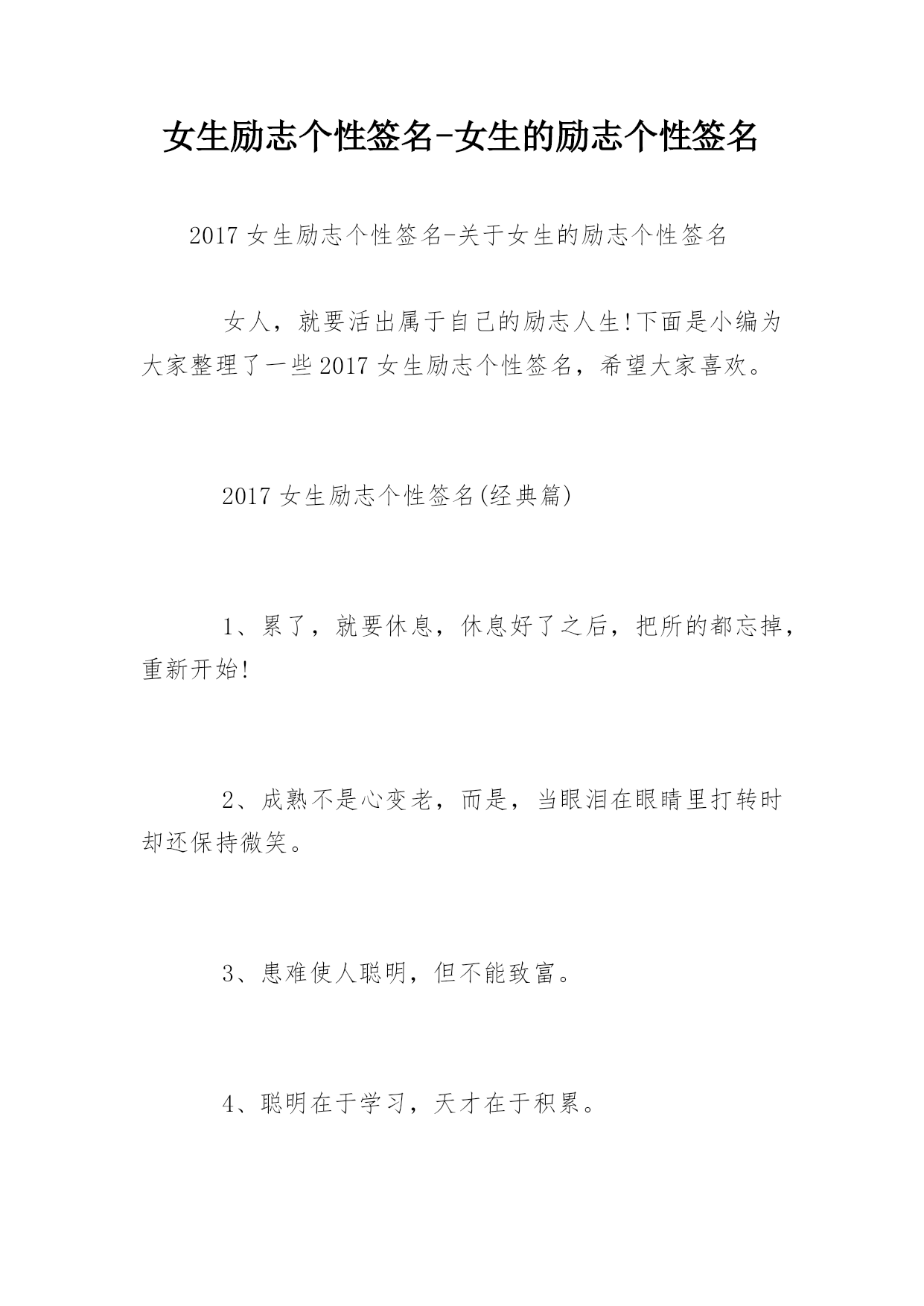 女生励志个性签名唯美_简短个性签名励志女生.docx