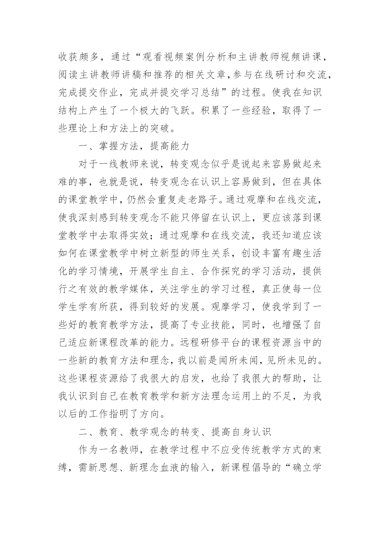 教师网络培训研修总结总结是指对某一阶段的工作、学习或思想中的经验或情况进行分析研究,做出带有规律性结论的书面材料,它可以给我们下一阶段的学习和工作生活做指导,不如立即行动起来写一份总结吧。如何把总结做到重点突出呢?以下是小编整理的教师网络培训研修总结,欢迎阅读与收藏。教师网络培训研修总结1通过这段时间的学习,收益颇多自参加远程研修以来,作为研修学员的我通过认真收看视频教学、撰写学习心得体会、参加班级交流和互评,从中学到了专家和同行们的很多值得我参考和借鉴的经验和案例,我深感自己在思想观念上受到教育和启发,