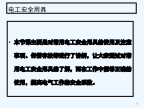 电工安全用具电工安全用具的作用绝缘安全用具的分类高压设备的基本绝缘安全用具包括低压设备的基本绝缘安全用具包括高压设备的辅助安全用具包括低压设备的辅助安全用具包括基本安全用具与辅助安全用具的区别安全用具的选用安全用具的选用安全用具的日常保养安全用具使用前的检查谢谢