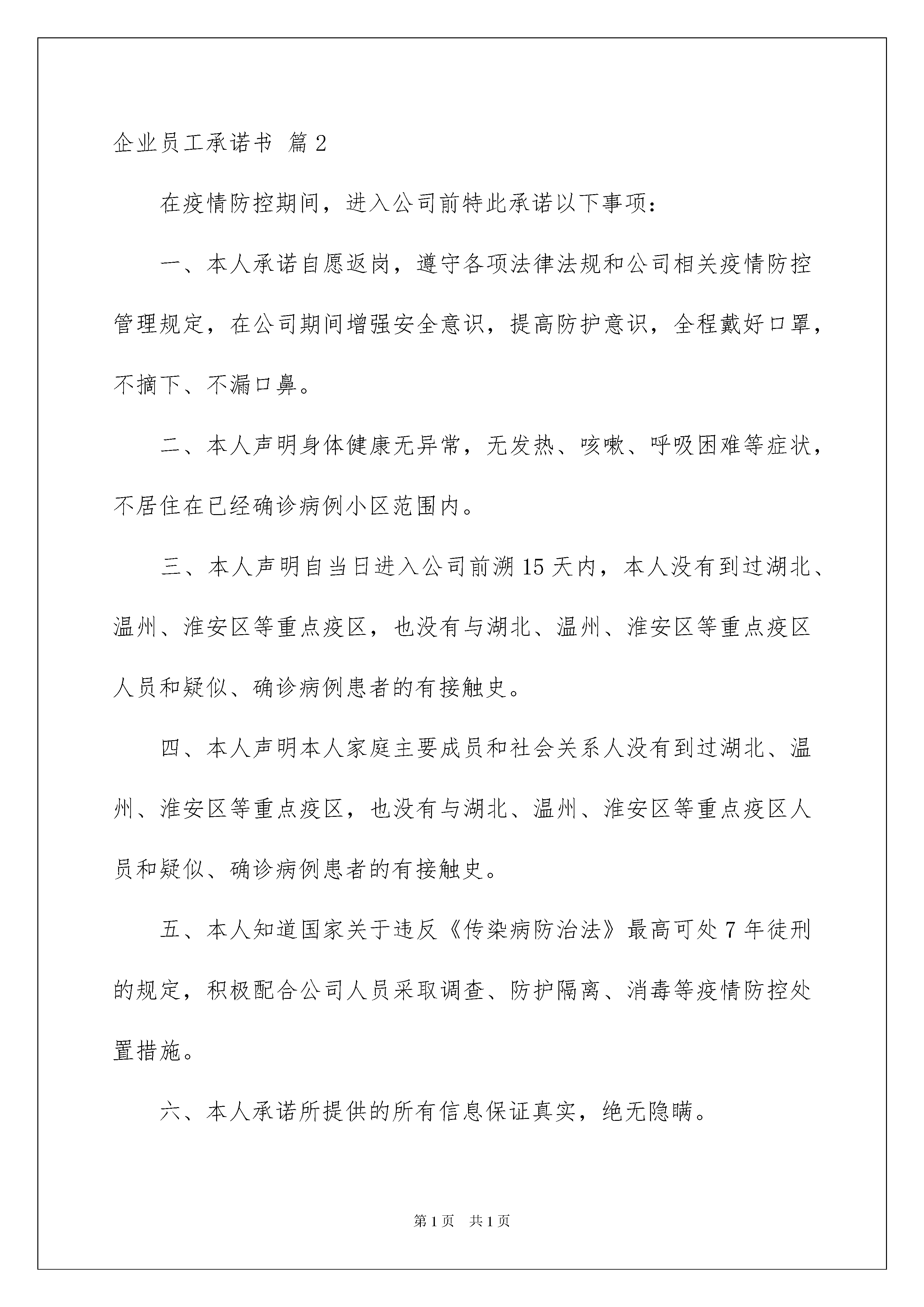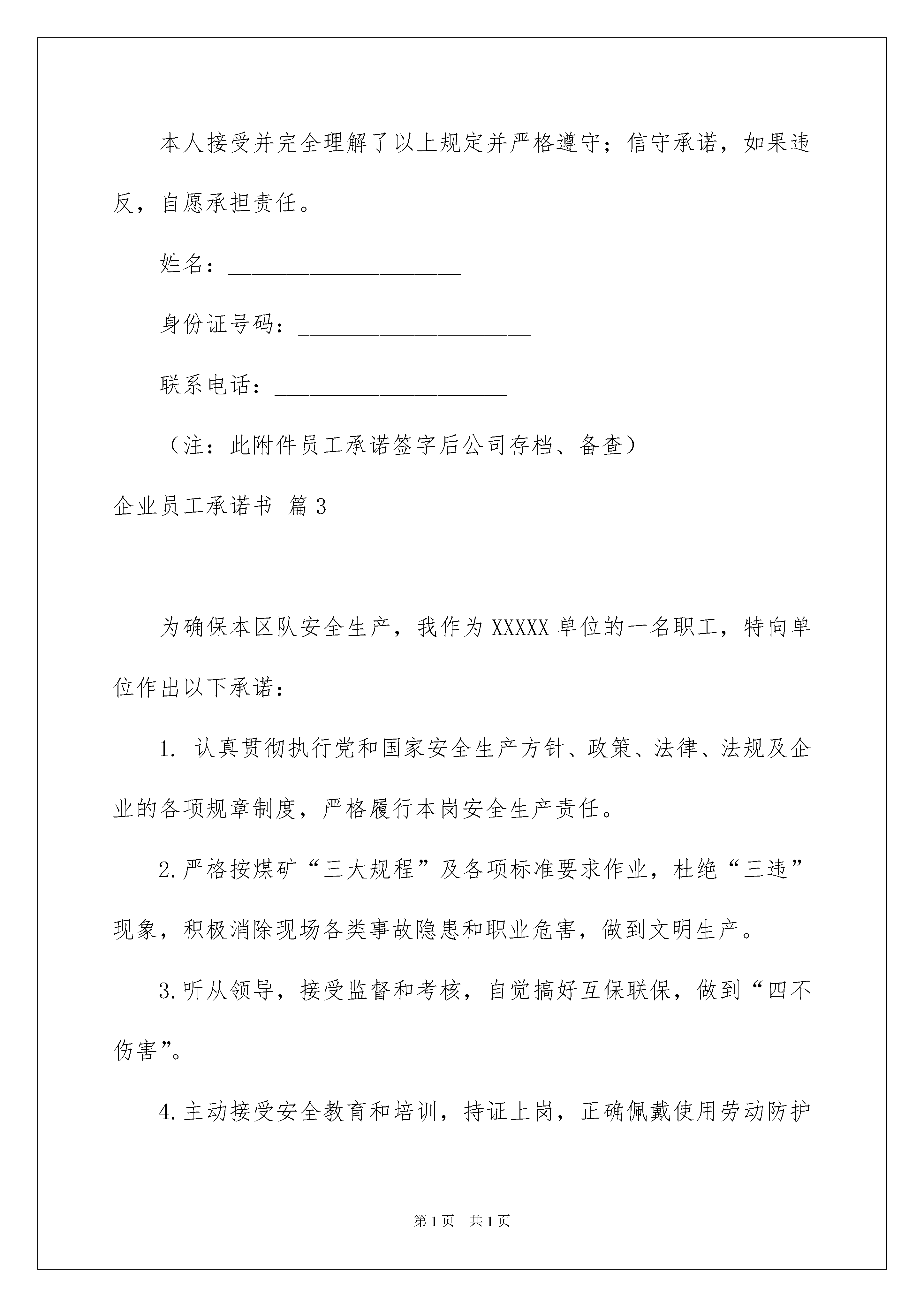 2022企业员工承诺书企业员工承诺书随着社会一步步向前发展许多地方都会运用到承诺书承诺书是否产生法律约束力要详细问题详细分析。你所见过的承诺书是什么样的呢?下面是我细心整理的企业员工承诺书9篇希望能够帮助到大家。企业员工承诺书