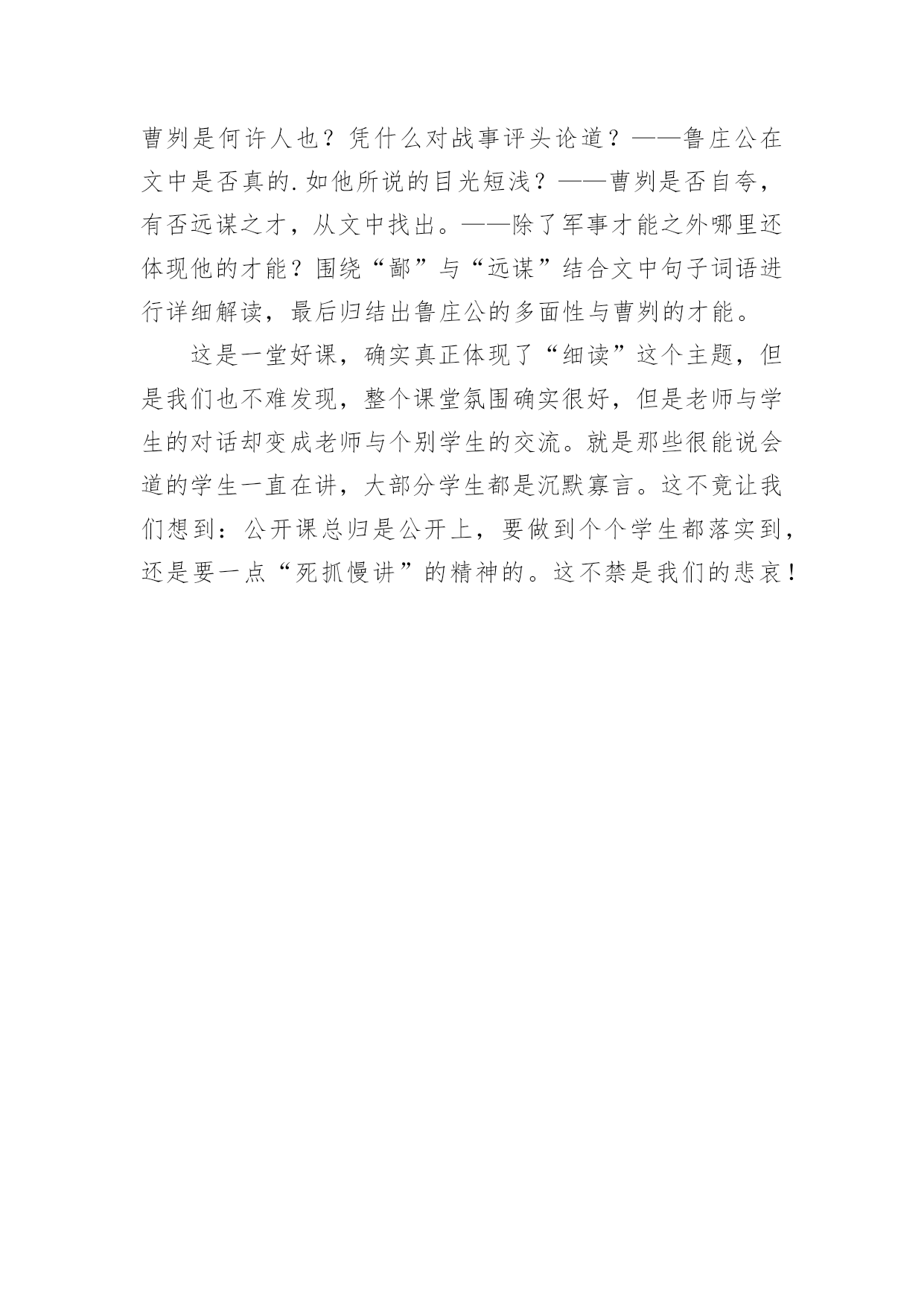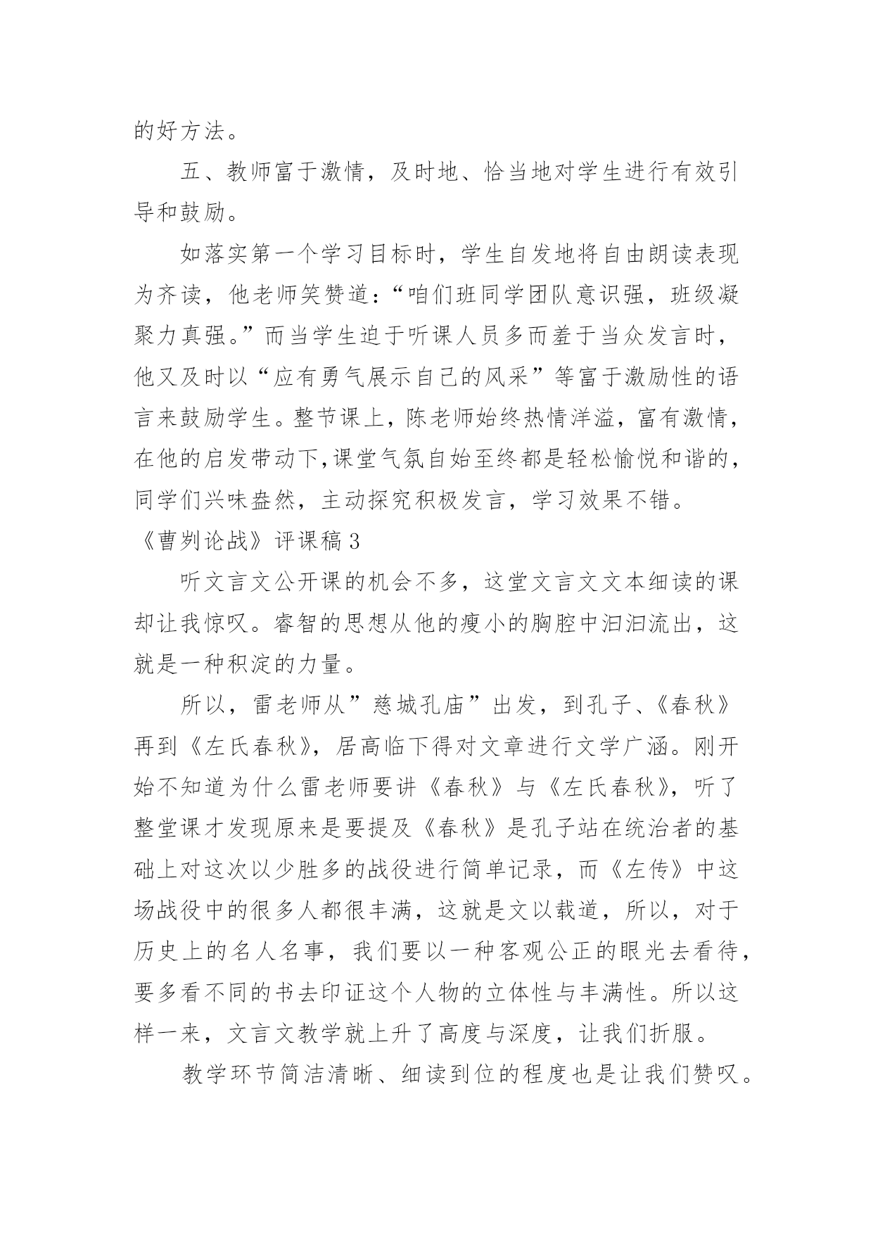 曹刿论战的评课 曹刿论战公开课评课稿(5篇).docx