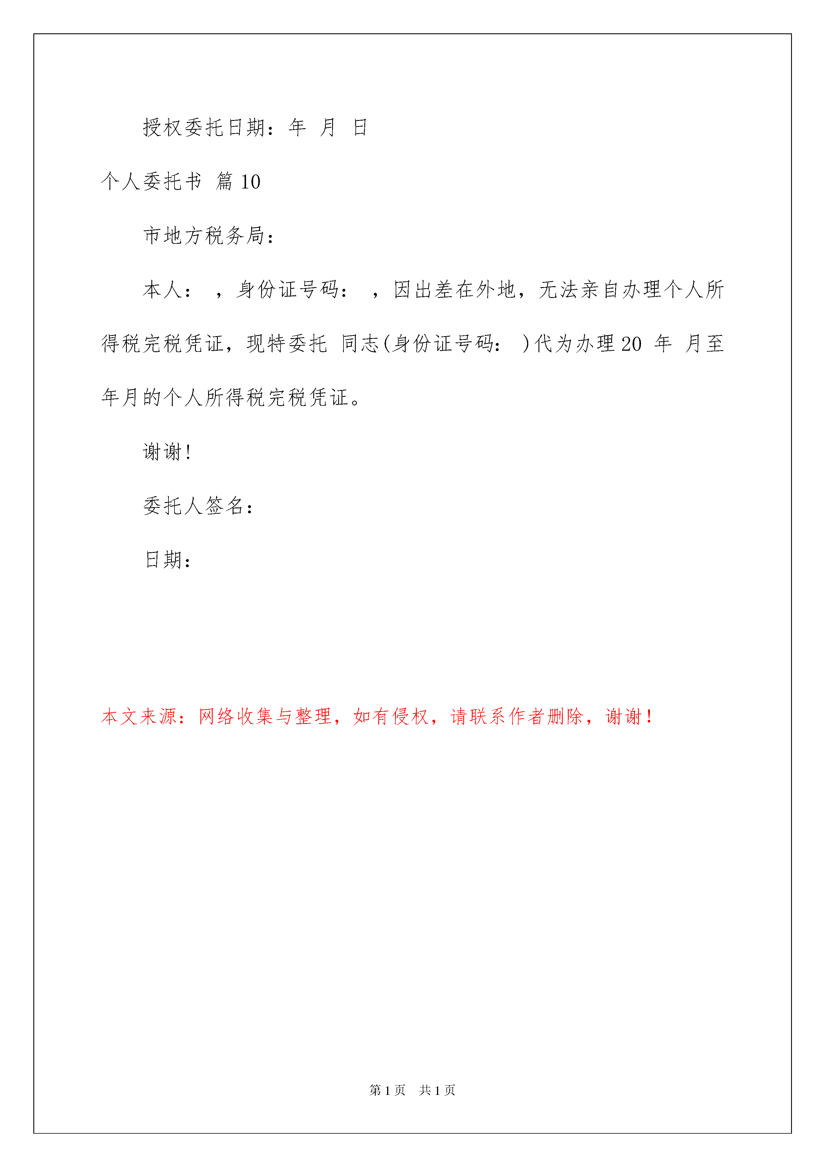 2022关于个人委托书模板集合十篇关于个人委托书模板集合十篇如果被委托人没有做出违背国家法律的任何权益委托人无权终止委托协议。在快速变化和不断变革的新时代委托书在我们处理事务上出现的频率越来越高那么问题来了到底应如何写一份恰当