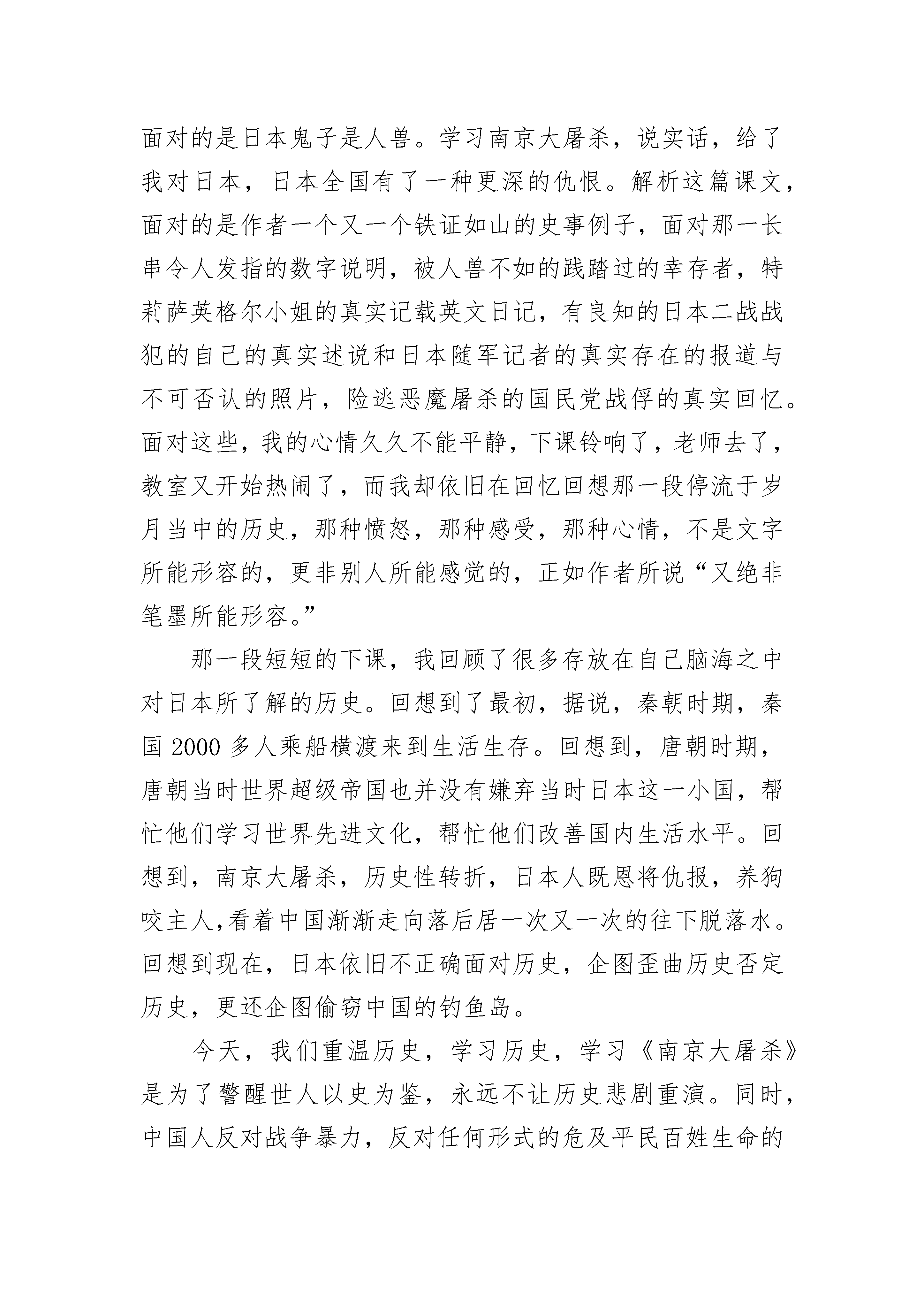2022国家公祭日活动观后感心得五篇同胞们、朋友们。今天,我们在这里隆重举行南京大屠杀死难者国家公祭仪式,缅怀南京大屠杀的无辜死难者,缅怀所有惨遭日本侵略者杀戮的死难同胞,缅怀为中国人民抗日战争胜利献出生命的革命先烈和民族英雄,表达中国人民坚定不移走和平发展道路的崇高愿望,宣示中国人民牢记历史、不忘过去、珍爱和平开创未来的坚定立场。1937年7月7日,日本侵略者悍然发动全面侵华战争,给中国人民带来了前所未有的巨大灾难。中国城乡战火连绵、硝烟四起,中国人民生灵涂炭、苦难深重,中国大地赤地千里、饿殍遍野。