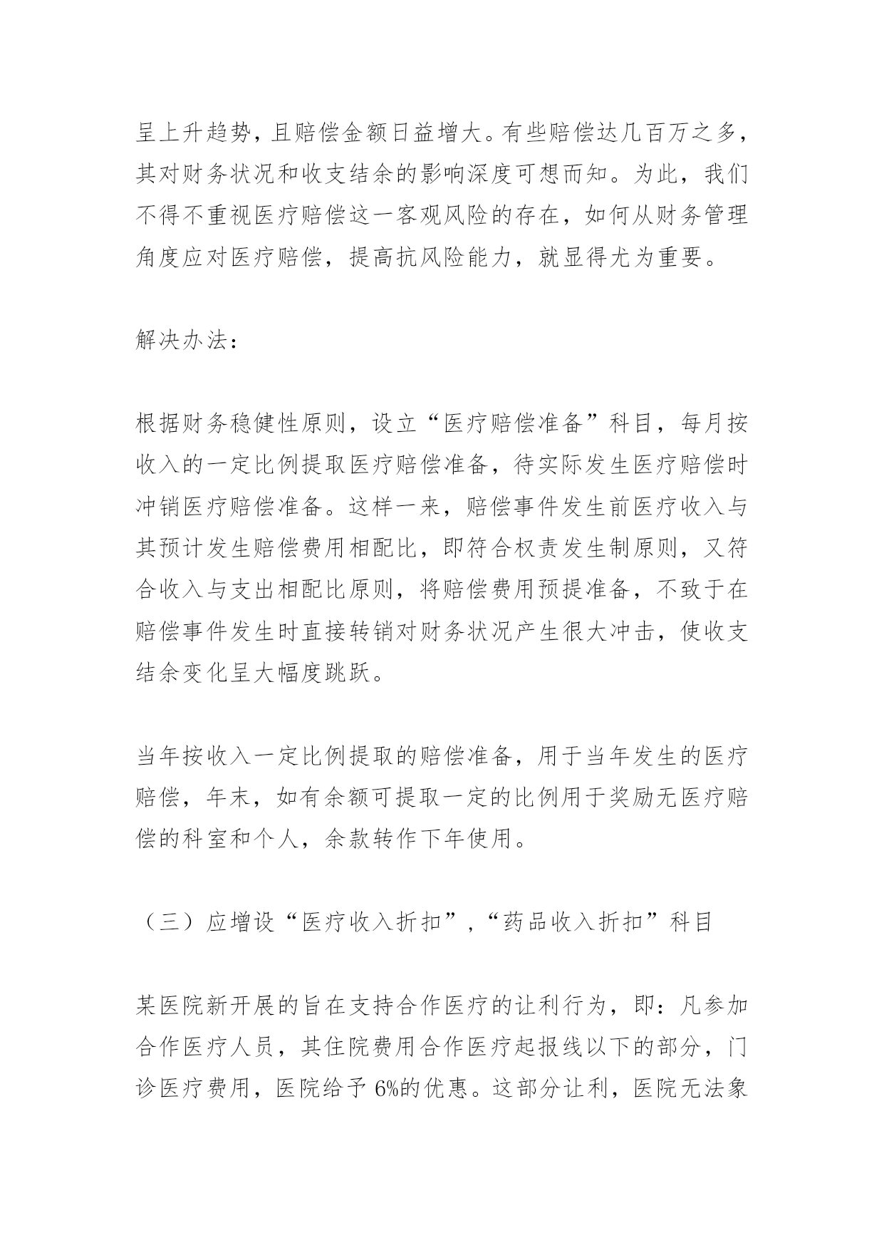 浅谈新医院会计制度对医院财务分析的影响随着医疗行业的发展和医院经营模式的不断升级,会计制度的完善也愈发重要。新会计制度对医院财务分析的影响是一个值得关注的议题。本文将从新医院会计制度的背景和意义入手,分析其对医院财务分析的具体影响,并探讨在新会计制度下如何进行医院财务分析。一、新医院会计制度的背景和意义新医院会计制度的出台,是我国改革开放以来医疗体制改革的一个重要举措。近年来,随着医疗费用不断上涨,医疗服务费用分摊和医疗资源分配的问题逐渐凸显,全社会对医疗体系的改革提出了更高的要求。其中,完善医院会计制度