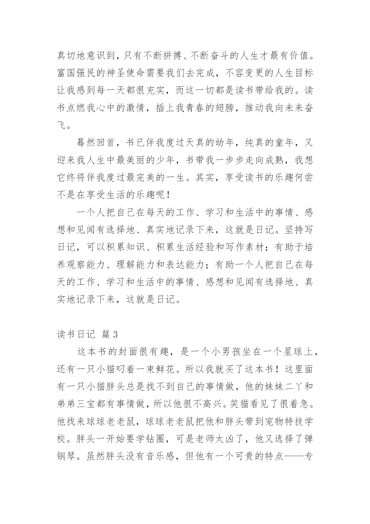 读书日记精选读书日记三篇转眼一天又过去了,相信你一定有很多值得分享的经验,此时此刻我们需要写一篇日记了。那么日记有什么格式呢?以下是小编整理的读书日记3篇,供大家参考借鉴,希望可以帮助到有需要的朋友。读书日记篇1我不怎么爱读书,但是书却很多,摆满了我的书架。有一天,妈妈到我的房间,看到我的书架很乱,便让我把书好好摆摆,“我回来以后必须把它摆完!”妈妈说。我接到命令之后,开始摆了起来。我一边摆一边想:嗨,这么多的书,想累死我啊!乱点就乱点呗,有什么的呀?还不如玩会儿电脑呢!我把书全都放在了桌子上,漫不经心的