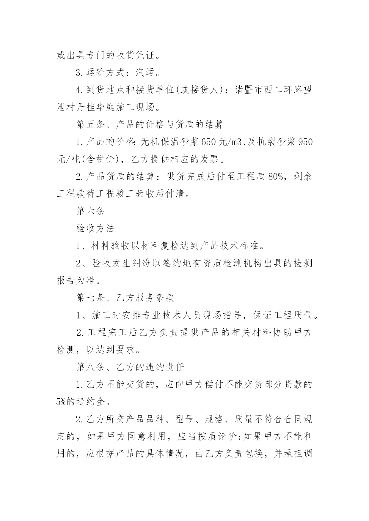 外墙保温材料购销合同外墙保温材料购销合同(8篇)在不断进步的社会中,合同在生活中的使用越来越广泛,合同是企业发展中一个非常重要的因素。那么相关的合同到底怎么写呢?以下是小编为大家整理的外墙保温材料购销合同,仅供参考,希望能够帮助到大家。外墙保温材料购销合同1买方(甲方):出卖方(乙方):经双方协商本着公平、公正、平等、互利的原则,订立本合同,以便共同遵守。第一条、拉运地点第二条、产品的品名、规格、计量单位、数量和价款。第三条、产品质量和技术标准符合国家及地方相关规范和图纸设计要求,确保产品质量。第四条、产