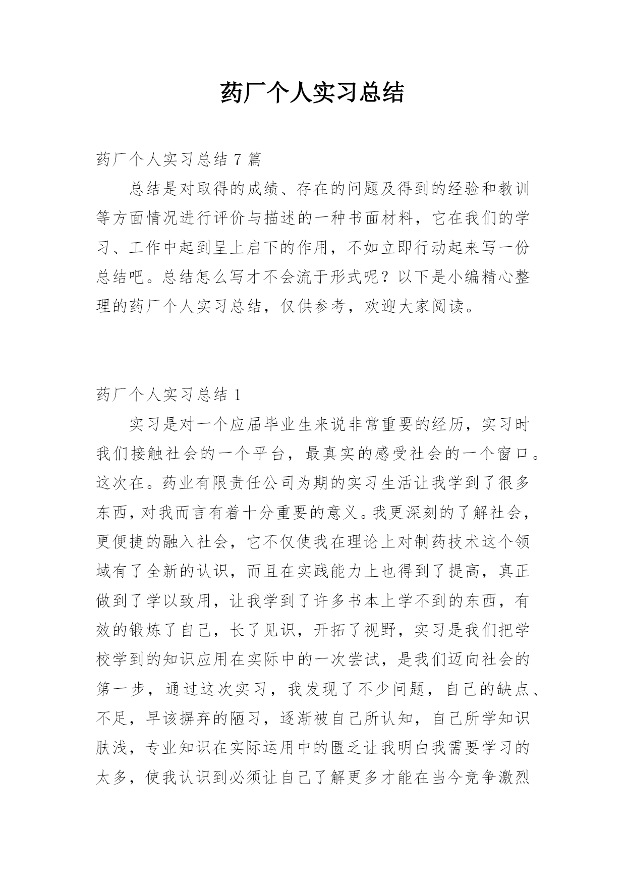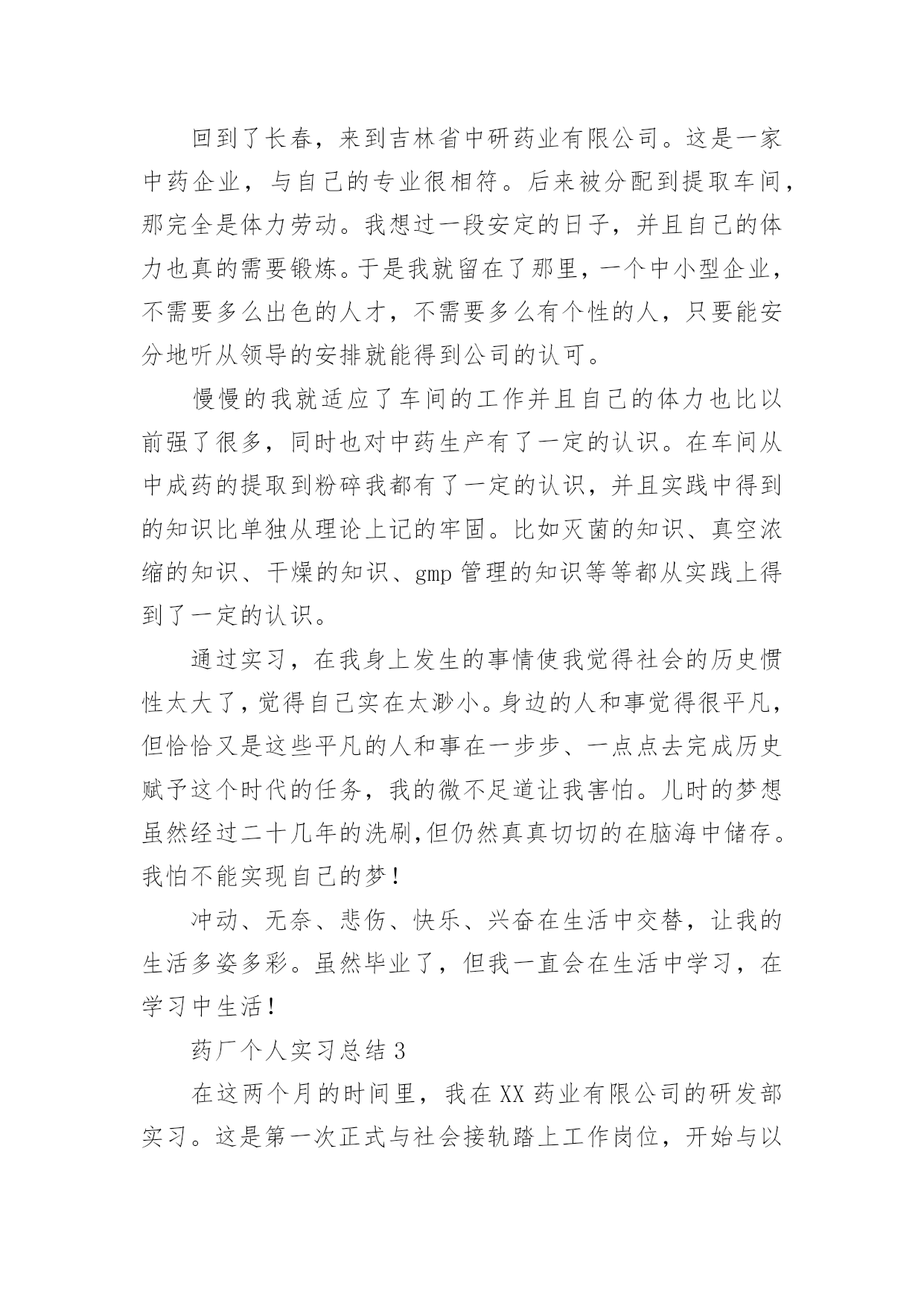 药厂个人实习总结精编.docx