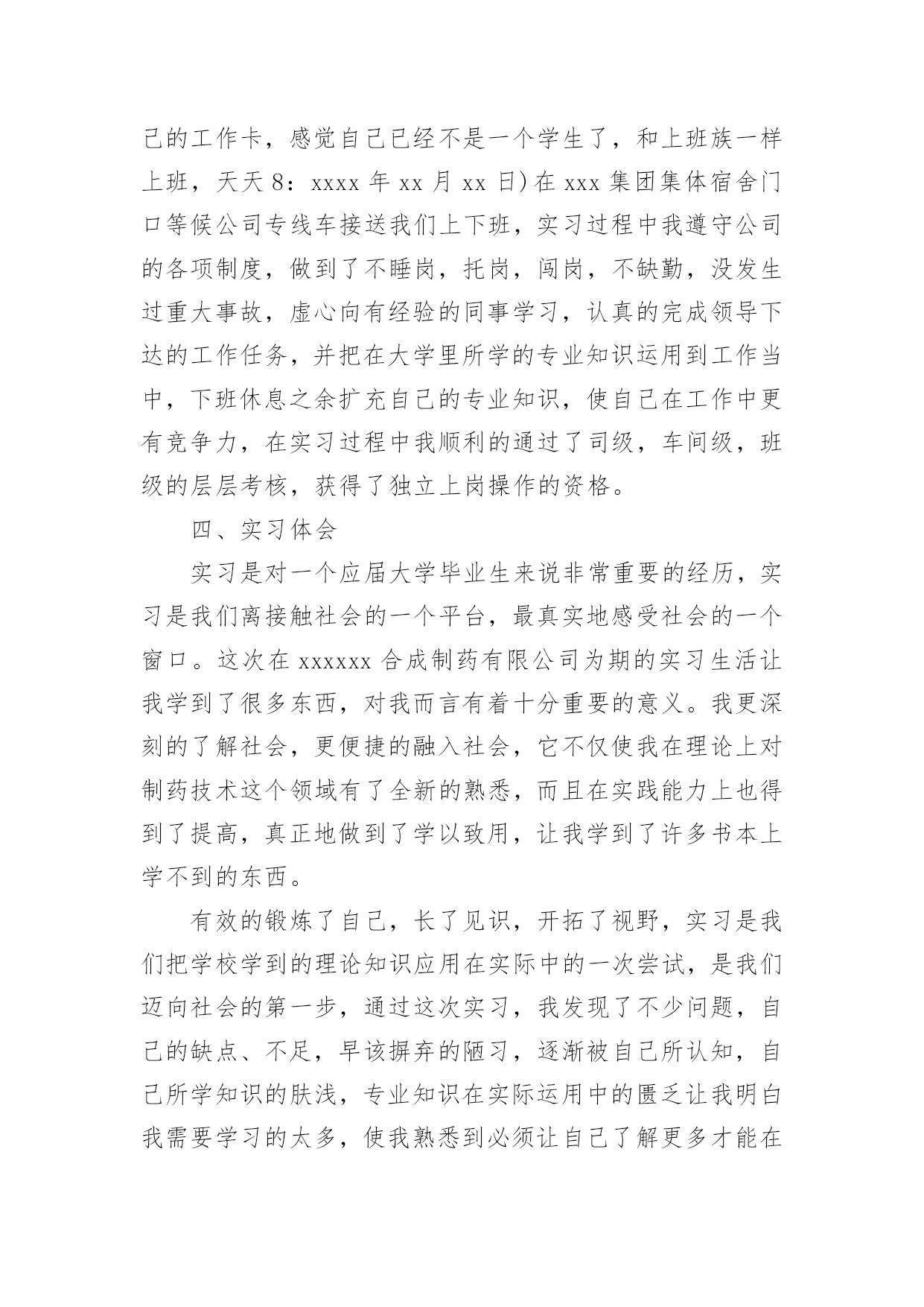 药厂个人实习总结药厂个人实习总结(集合4篇)总结是指社会团体、企业单位和个人对某一阶段的学习、工作或其完成情况加以回顾和分析,得出教训和一些规律性认识的一种书面材料,它是增长才干的一种好办法,让我们来为自己写一份总结吧。那么总结有什么格式呢?下面是小编为大家整理的药厂个人实习总结,欢迎阅读与收藏。药厂个人实习总结1实习是对一个应届毕业生来说非常重要的经历,实习时我们接触社会的一个平台,最真实的感受社会的一个窗口。这次在。药业有限责任公司为期的实习生活让我学到了很多东西,对我而言有着十分重要的意义。我更深刻