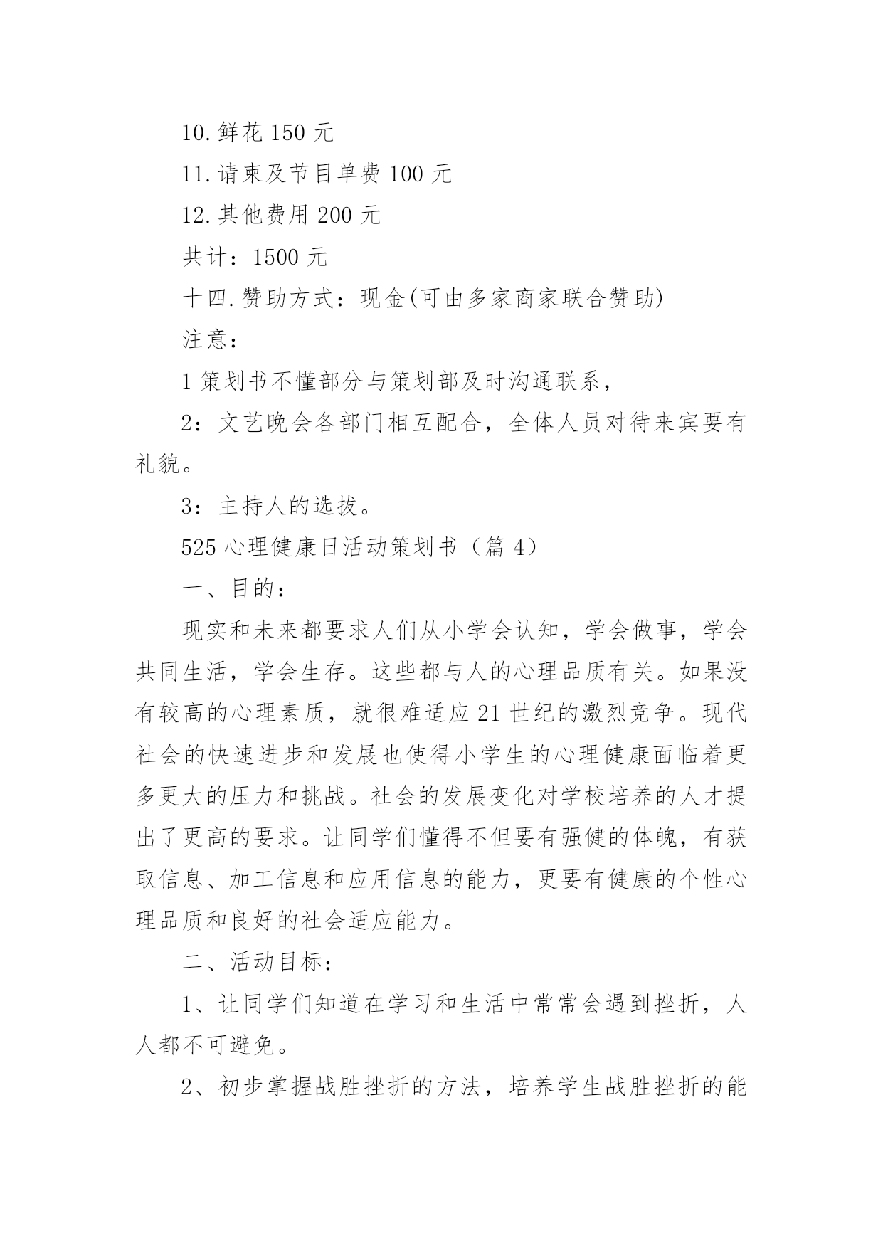 525心理健康日活动策划书认识自我,悦纳自我,能体验到自身的存在价值,乐观自信就是心理健康的表现。525心理健康日活动策划书怎么写?今天小编在这里给大家分享一些关于525心理健康日活动策划书,希望能帮到各位。525心理健康日活动策划书(篇1)一、活动类型:小学生心理健康教育主题班会二、活动主题:在一声声“不可以”中长大三、活动准备:PPT课件四、活动目的:1、通过活动,使学生学会并懂得与父母正确相处;2、培养学生正确表达爱;3、通过活动初步体验换位思考,促进心理健康成长;4、通过活动,让学生对如何与老师及