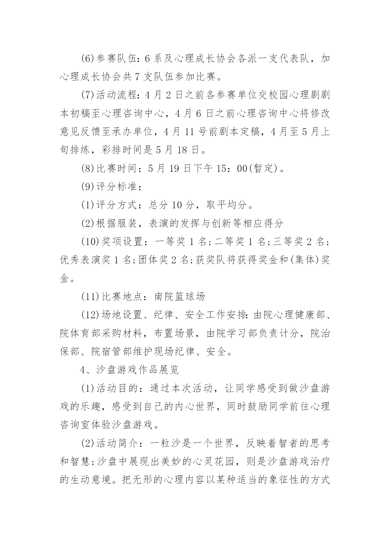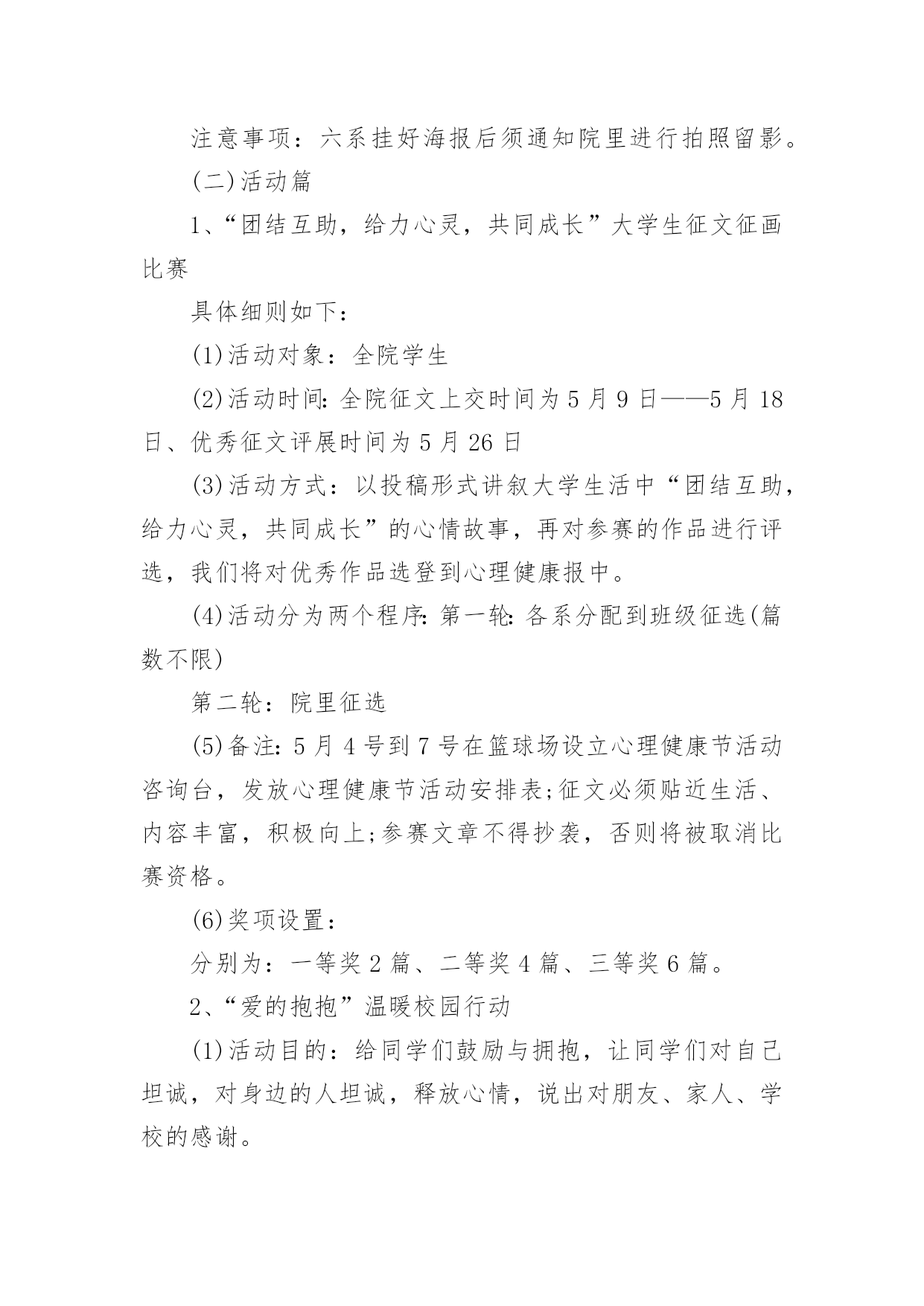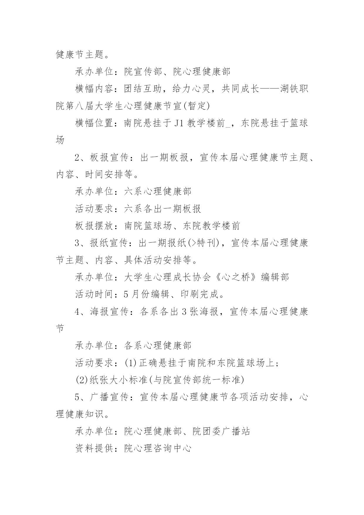 525心理健康日活动策划书525心理健康日活动策划书9篇时光匆匆,我们在忙碌中奔走,一段时间的工作已告一段落,我们的工作再谱新的篇章,同样也要定好新的目标,让我们一起来学习写策划书吧。那么策划书有什么格式呢?以下是小编精心整理的525心理健康日活动策划书,欢迎大家借鉴与参考,希望对大家有所帮助。525心理健康日活动策划书1活动主题:关爱你我他,从心做起活动目的:在社会飞速进步的同时,人们的压力与日俱增,在今天的大学校园心理问题一直困扰着一部分学生,他们需要我们给予关怀和帮助,而5.25谐音"我爱我"心理健