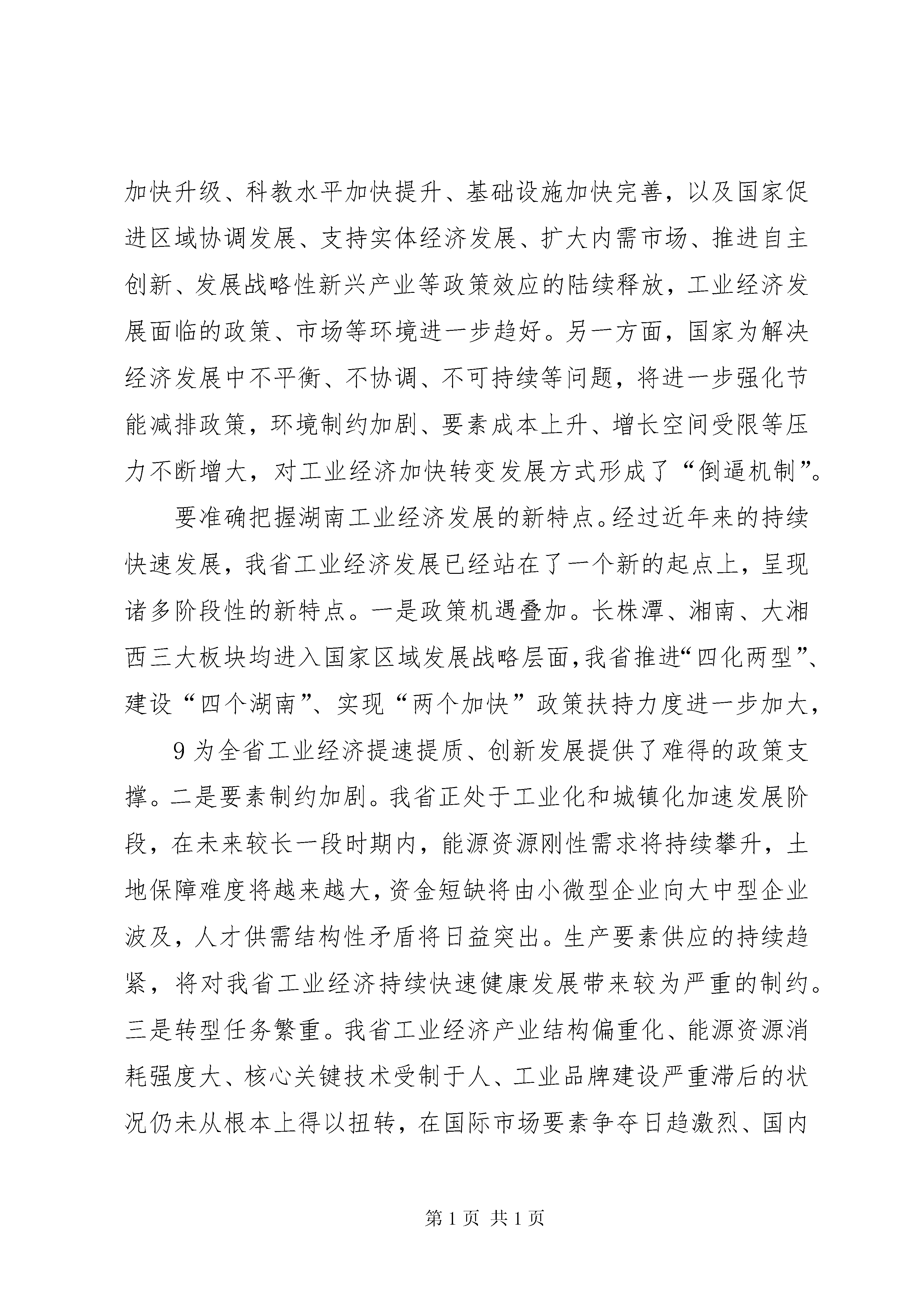 县委书记严兴德在全县加速推进新型工业化工作会议上的讲话突出稳中求进加快转型升级努力实现全省工业经济更好更快发展——在全省加速推进新型工业化工作会议上的讲话(2012年2月29日)同志们:这次全省加速推进新型工业化工作会议,主要任务是深入贯彻落实中央经济工作会议、全国工业和信息化工作会议以及省委经济工作会议精神,总结2011年工作,分析面临的形势,研究部署在新的起点上加速推进湖南特色新型工业化。等会,克保副书记将作重要讲话,请大家认真学习领会,抓好贯彻落实。下面,我先讲三个方面的意