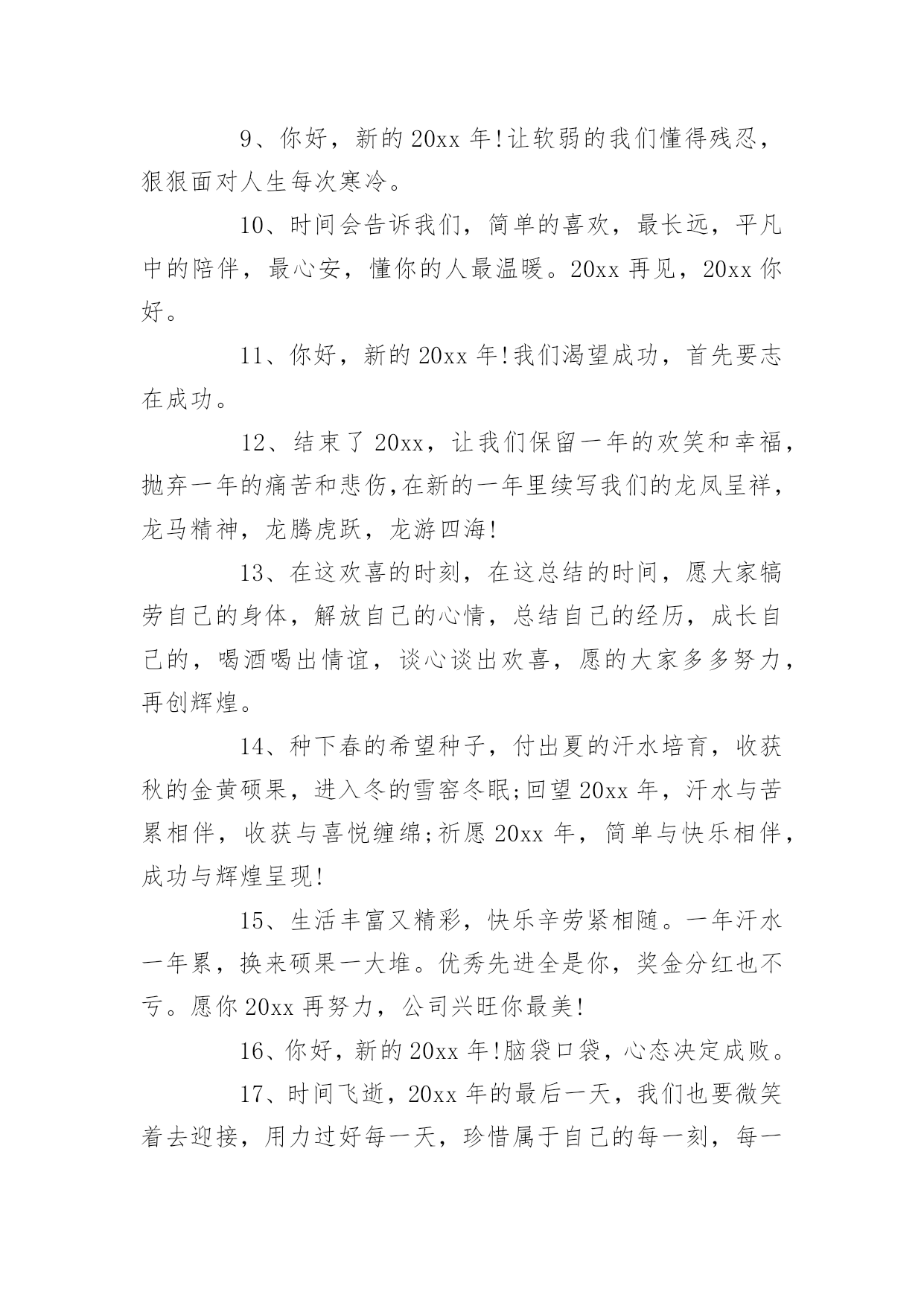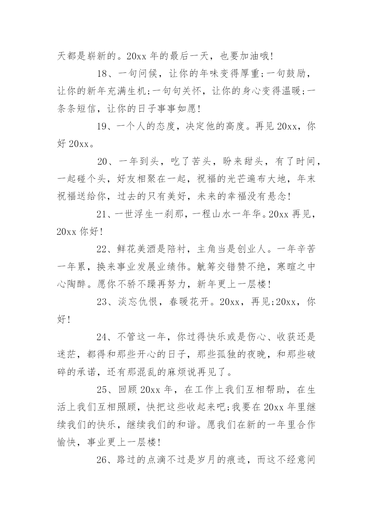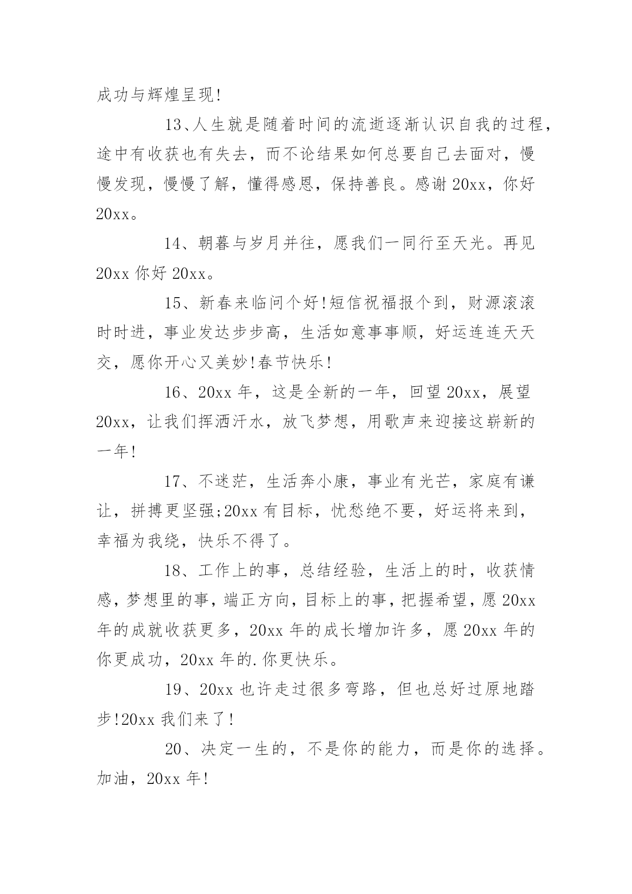 即将结束的句子在日复一日的学习、工作或生活中,大家对句子都再熟悉不过了吧,从句法角度说,句子是使最大的语法单位。你所见过的句子是什么样的呢?下面是小编为大家收集的即将结束的句子,欢迎阅读与收藏。即将结束的句子11、汗水智慧拨动成功的琴弦,齐心合力唱响团结的赞歌,新的一年希望我们众志成城艰苦奋斗,让成就的宫殿为我们再添一座,闪着荣光耀着辉煌,装着我们共同的梦想。加油!2、20xx年,过好自己,别人的故事不需要你。3、心若在,梦就在,梦若在,希望就在,做人,一定要怀有梦想,任何时候,都不能放弃,20xx,依然