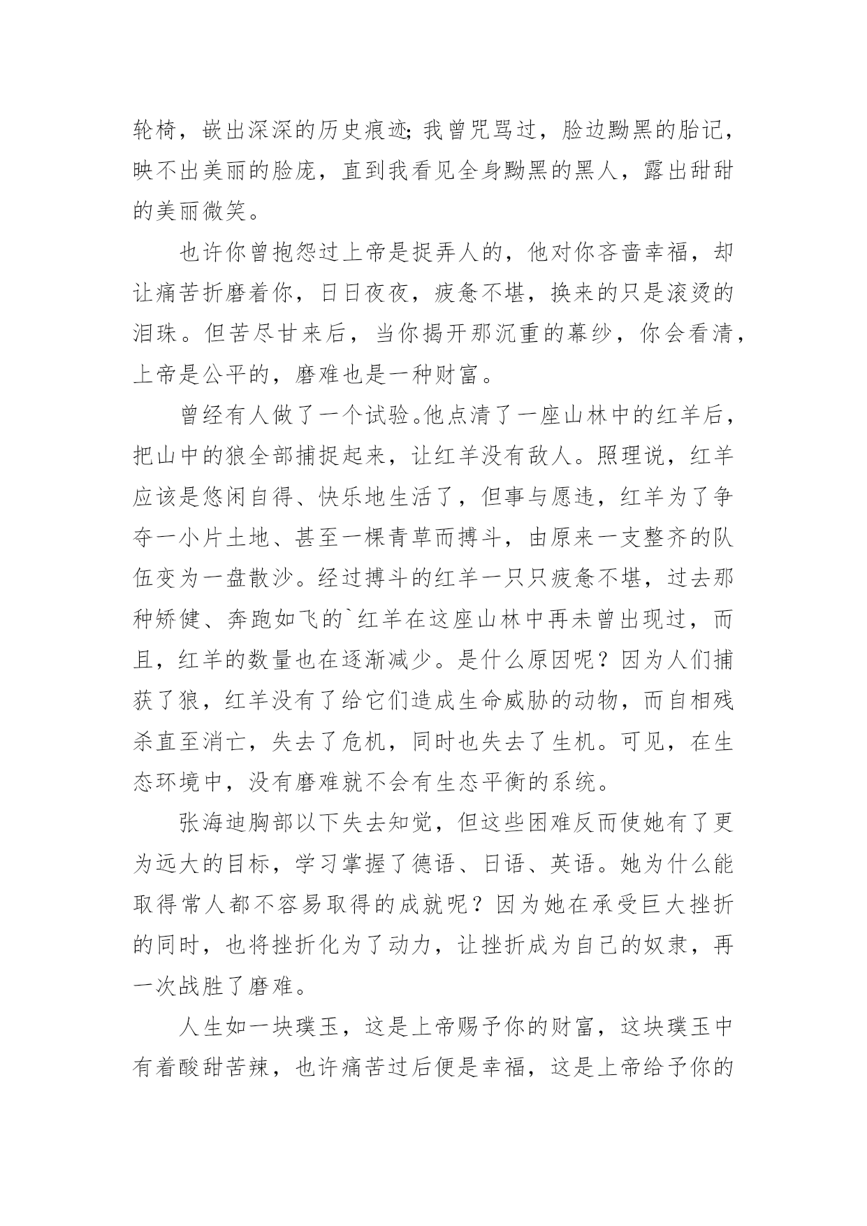青春主题演讲稿关于青春主题演讲稿(合集14篇)演讲稿是为了在会议或重要活动上表达自己意见、看法或汇报思想工作情况而事先准备好的文稿。在社会发展不断提速的今天,需要使用演讲稿的场合越来越多,写起演讲稿来就毫无头绪?下面是小编为大家收集的关于青春主题演讲稿,仅供参考,欢迎大家阅读。关于青春主题演讲稿篇1尊敬的老师们,亲爱的同学们:大家上午好!我今天演讲的题目是《青春没有“不可能”》。新学期伊始,我们带着希望,又踏上了新的征程。在新的学期里,我们将面临新的挑战!高中生活的这段时光,快乐而忙碌;这些记忆,温暖又幸