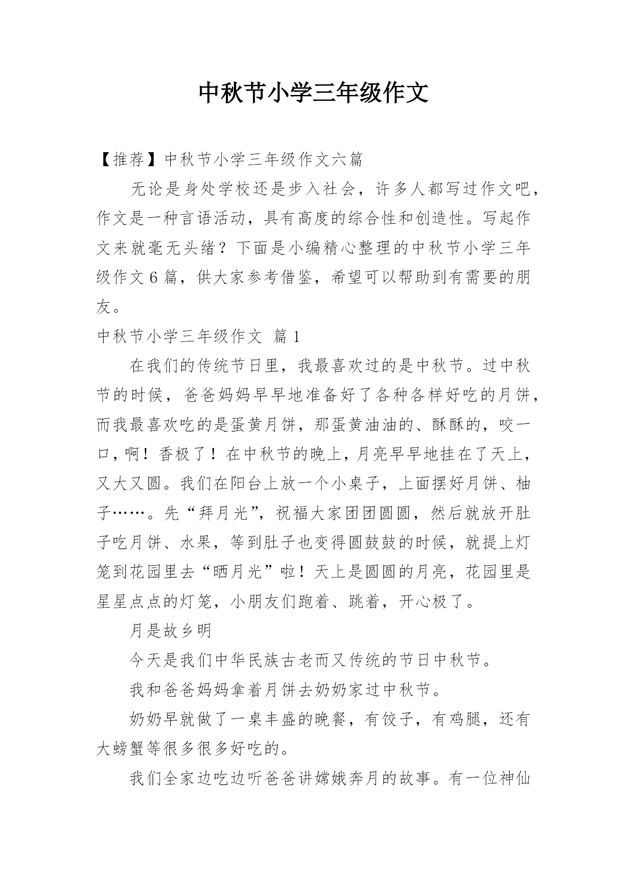 小学三年级中秋节作文精选.docx