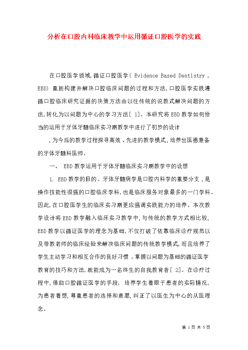 分析在口腔内科临床教学中运用循证口腔医学的实践.docx