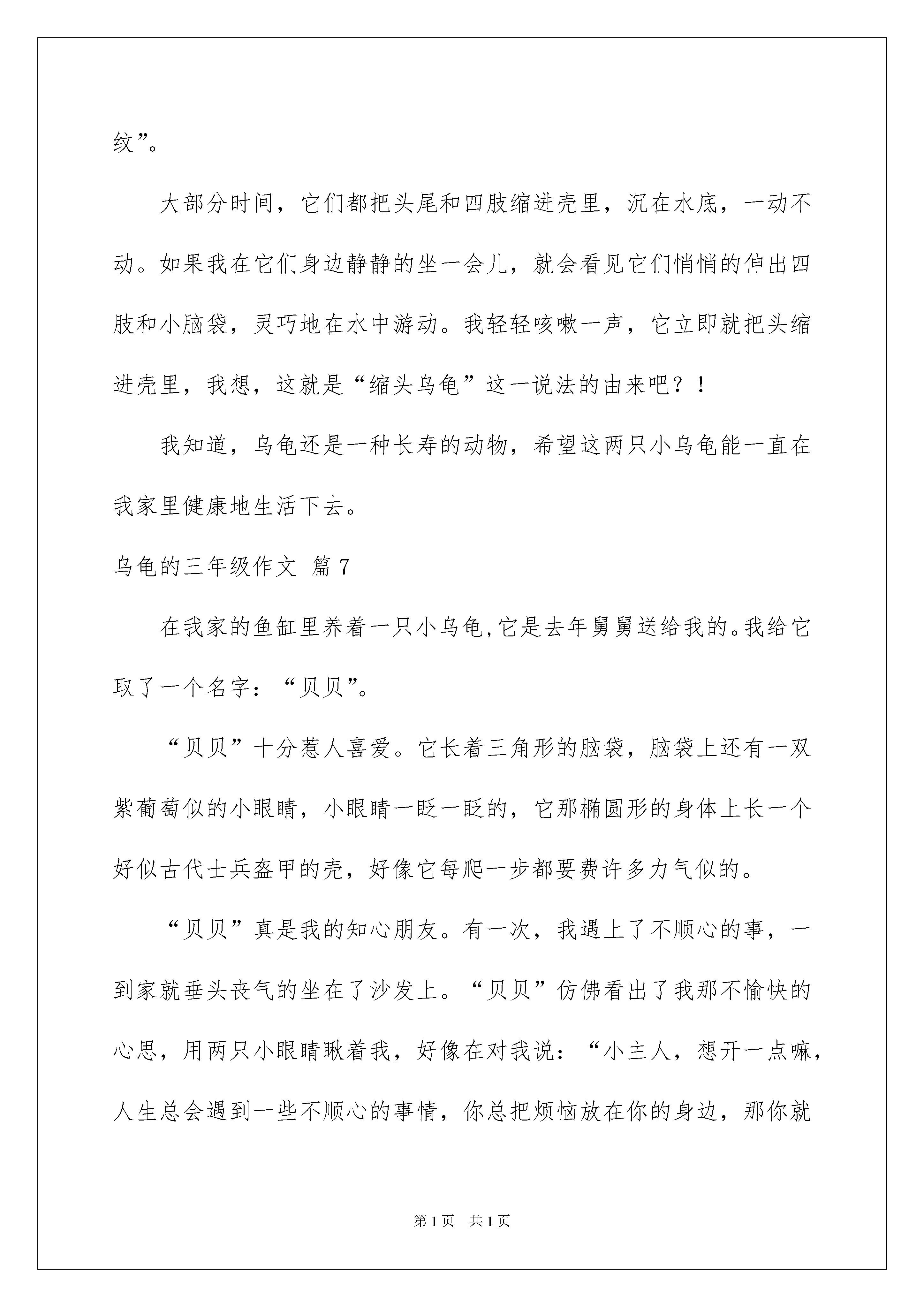 2022关于乌龟的三年级作文合集7篇乌龟的三年级作文在日常学习、工作或生活中大家对作文都不陌生吧借助作文人们可以实现文化交流的目的。还是对作文一筹莫展吗?下面是我整理的乌龟的三年级作文7篇希望对大家有所帮助。乌龟的三年级作文篇1我家有一只可爱的小乌龟。它身穿深绿色