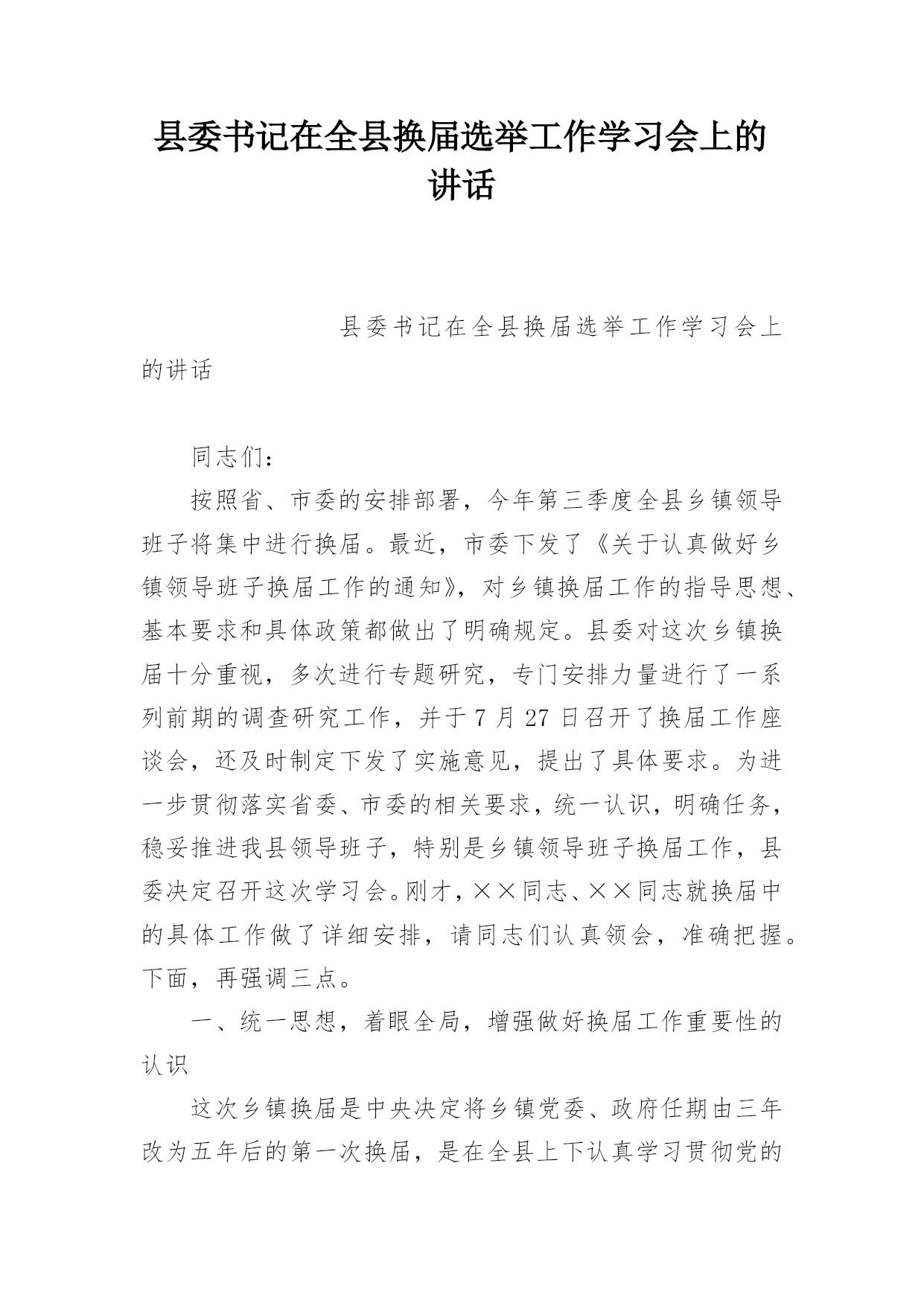 县委书记在全县换届选举工作学习会上的讲话.docx