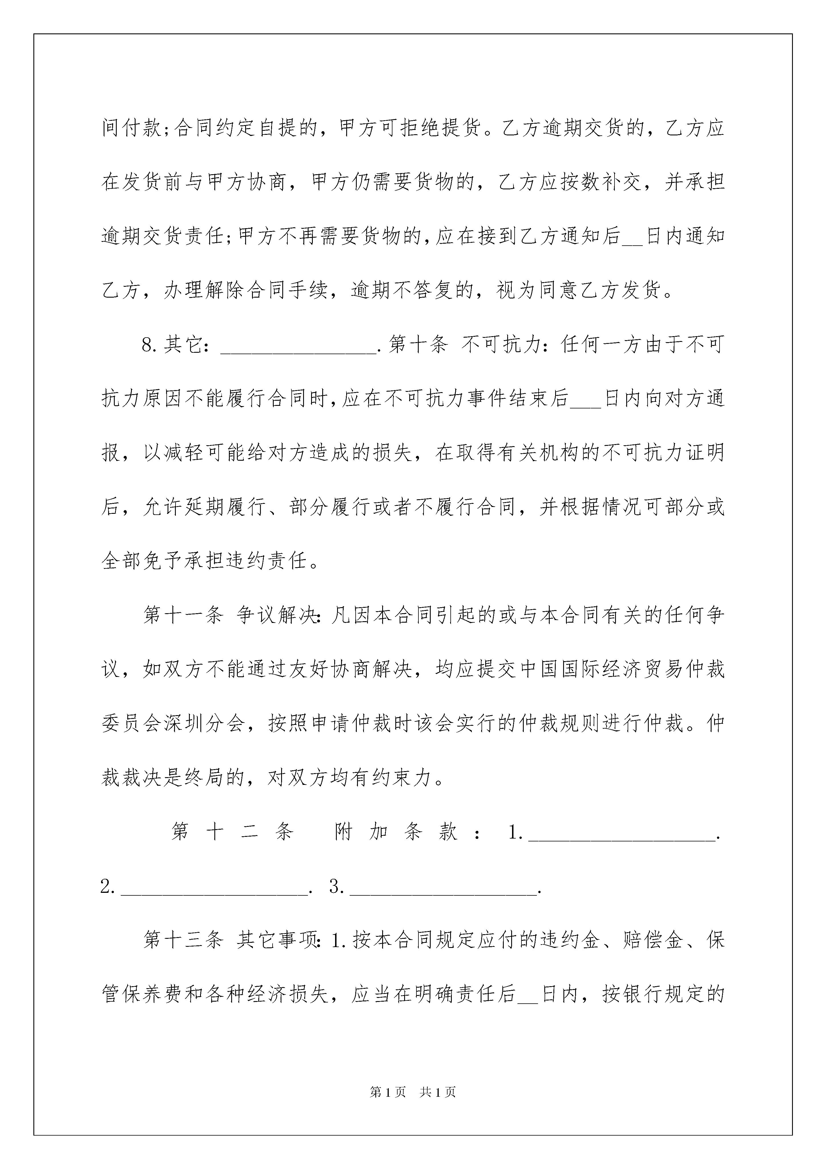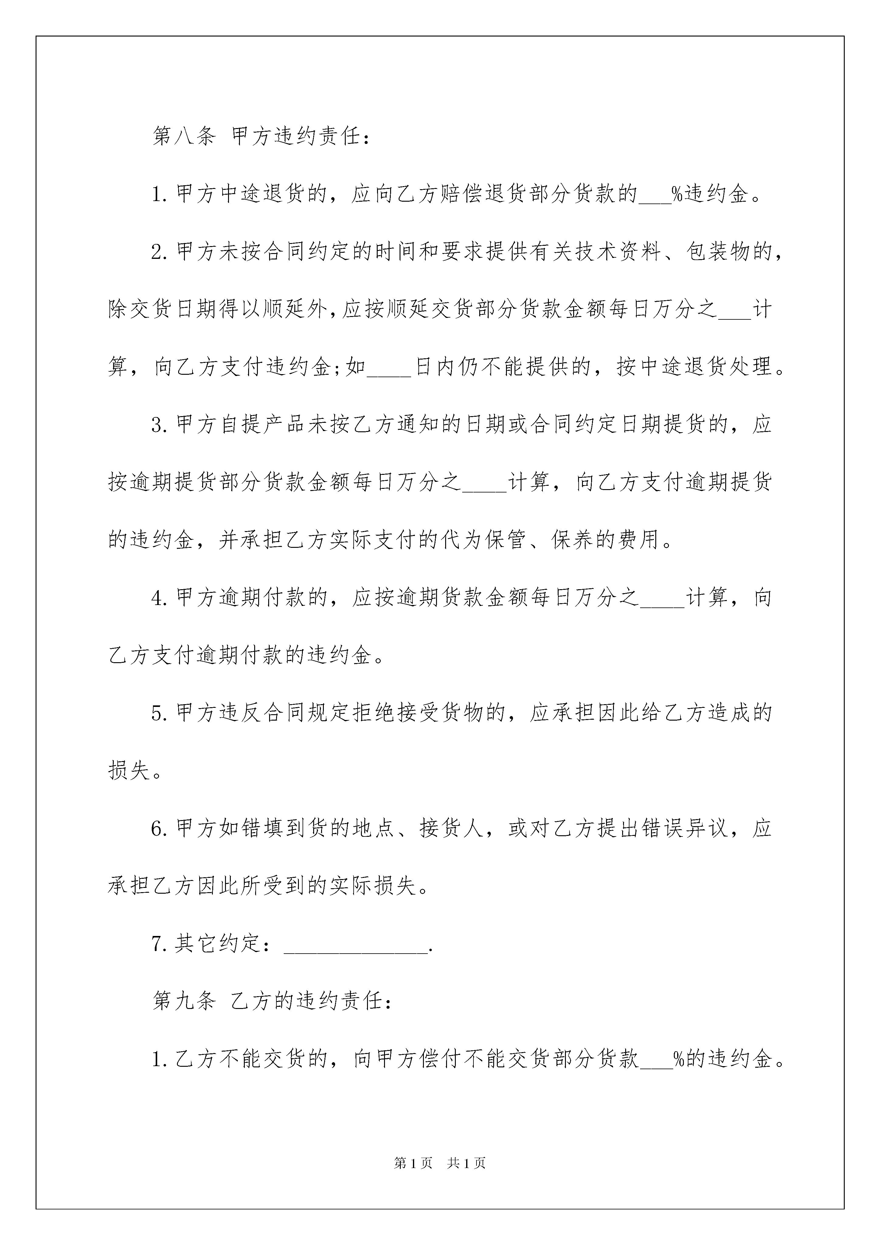 2022关于买卖合同模板锦集9篇关于买卖合同模板锦集9篇随着法律法规不断完善,人们越发重视合同,合同的用途越来越广泛,签订合同是为了保障双方的利益,避免不必要的争端。那么常见的合同书是什么样的呢?下面是我帮大家整理的买卖合同9篇,供大家参考借鉴,希望可以帮助到有需要的朋友。买卖合同篇1供方:_________________________需方:__
