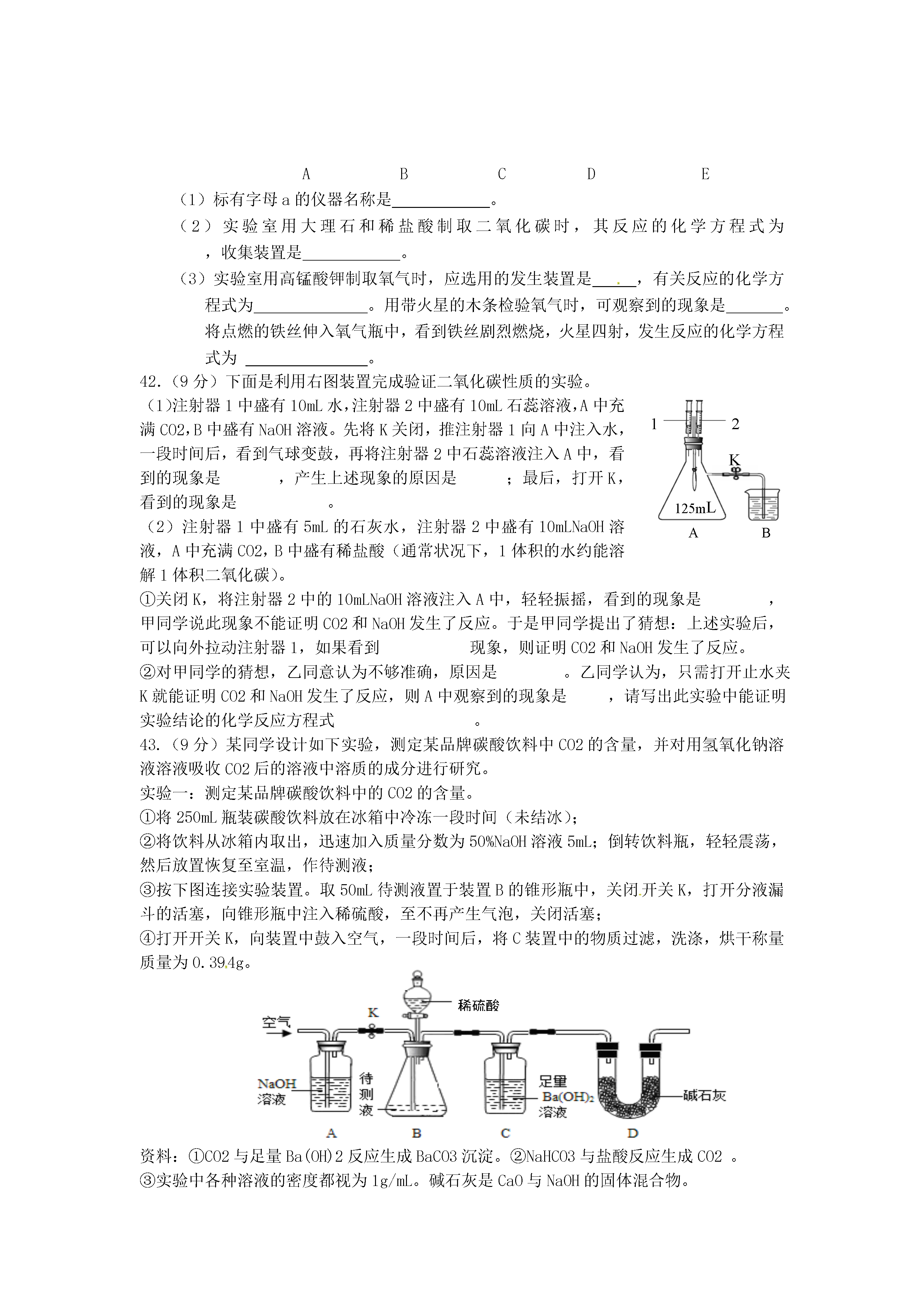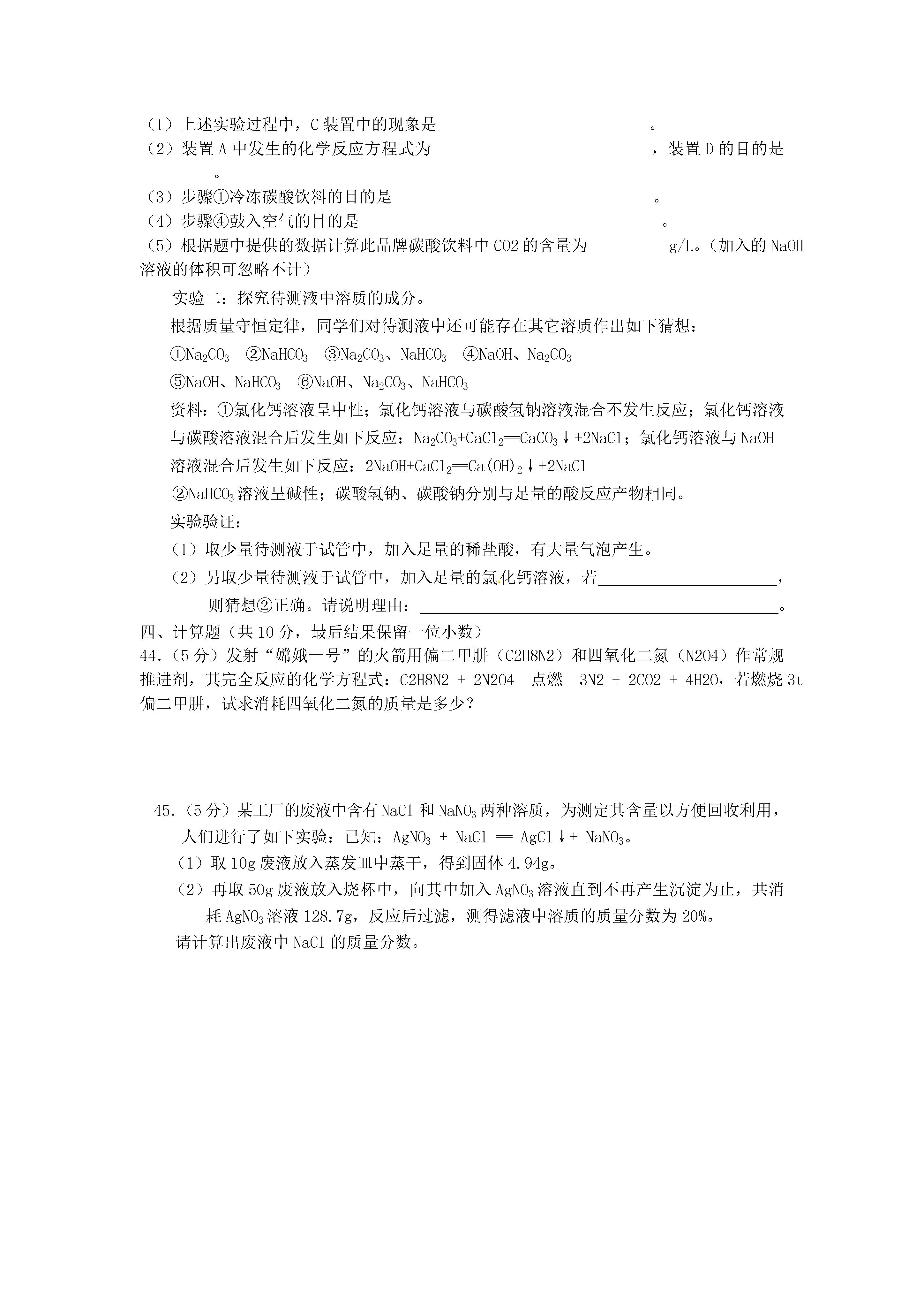 化学毕业统一检测(二模)试题(无答案) 试题.doc