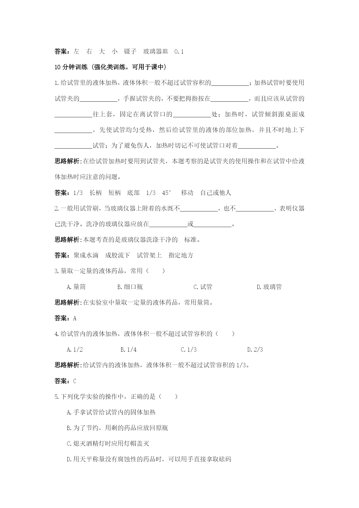 【黄冈零距离】备战2011年化学中考同步创新 第一单元《走进化学世界》课题3 走进化学实验室(二)课时练习.doc